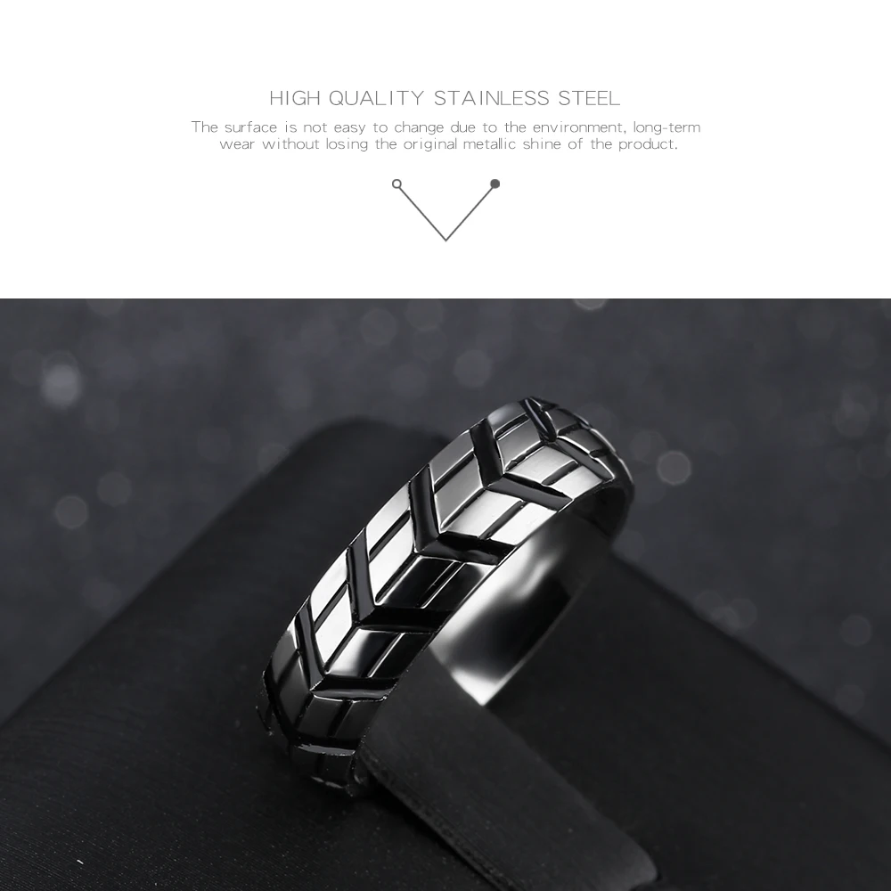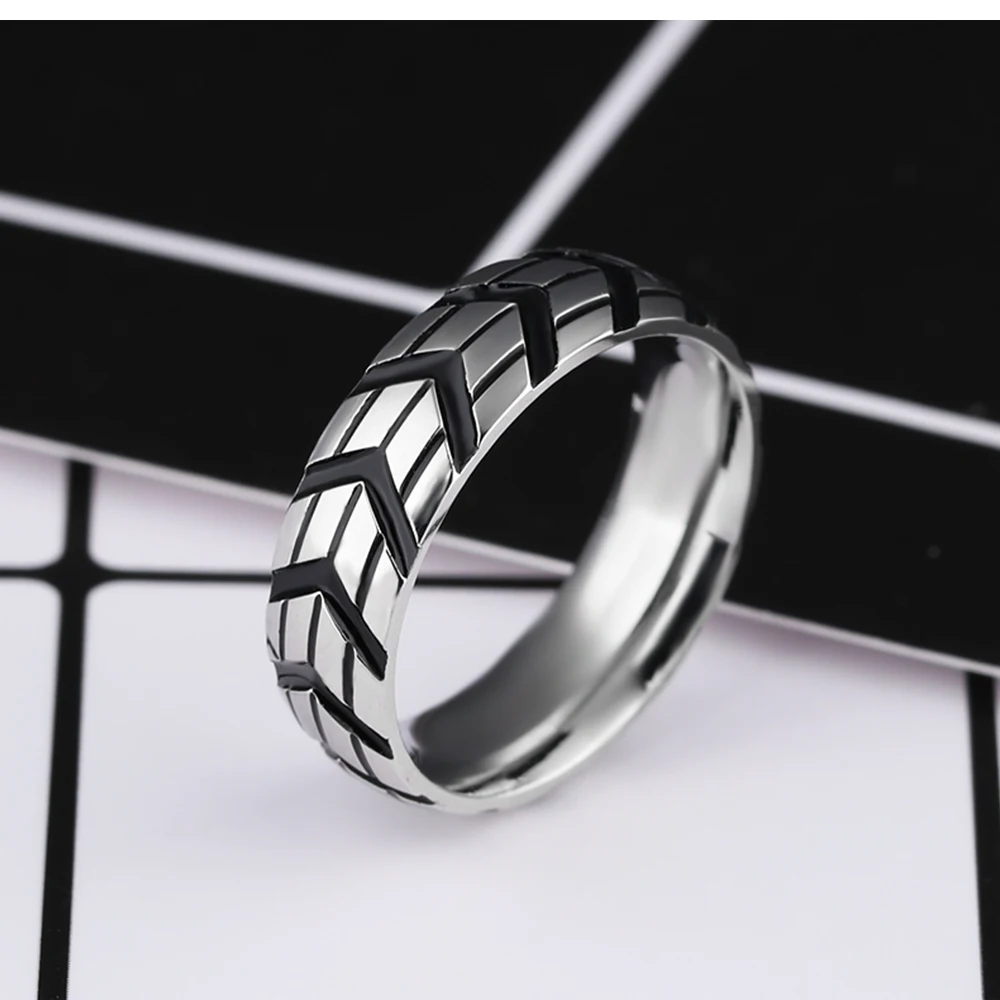 • LICA Creative Car Tire Print Men's Ring Stainless Steel Index Finger Ring Tail Ring