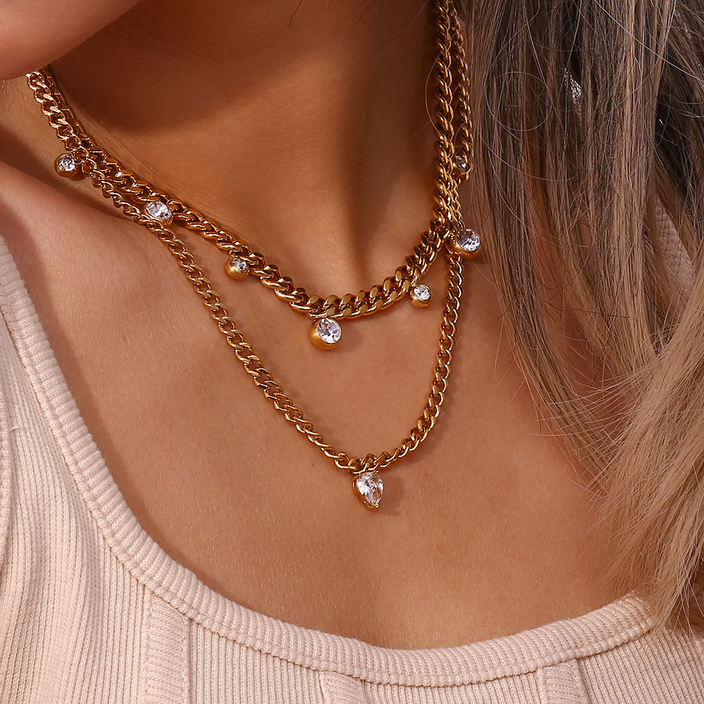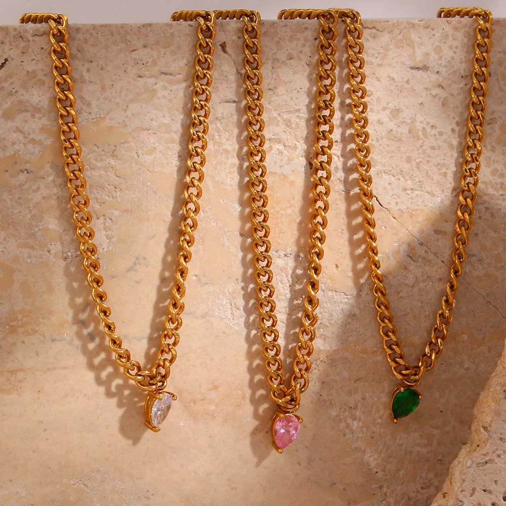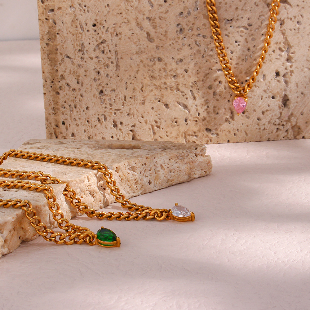 Hot selling clavicle chain accessories stainless steel Cuban chain zircon pendant necklace for women