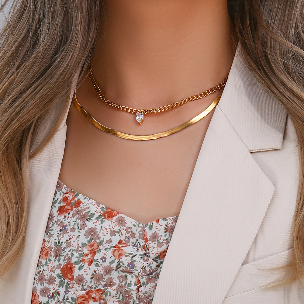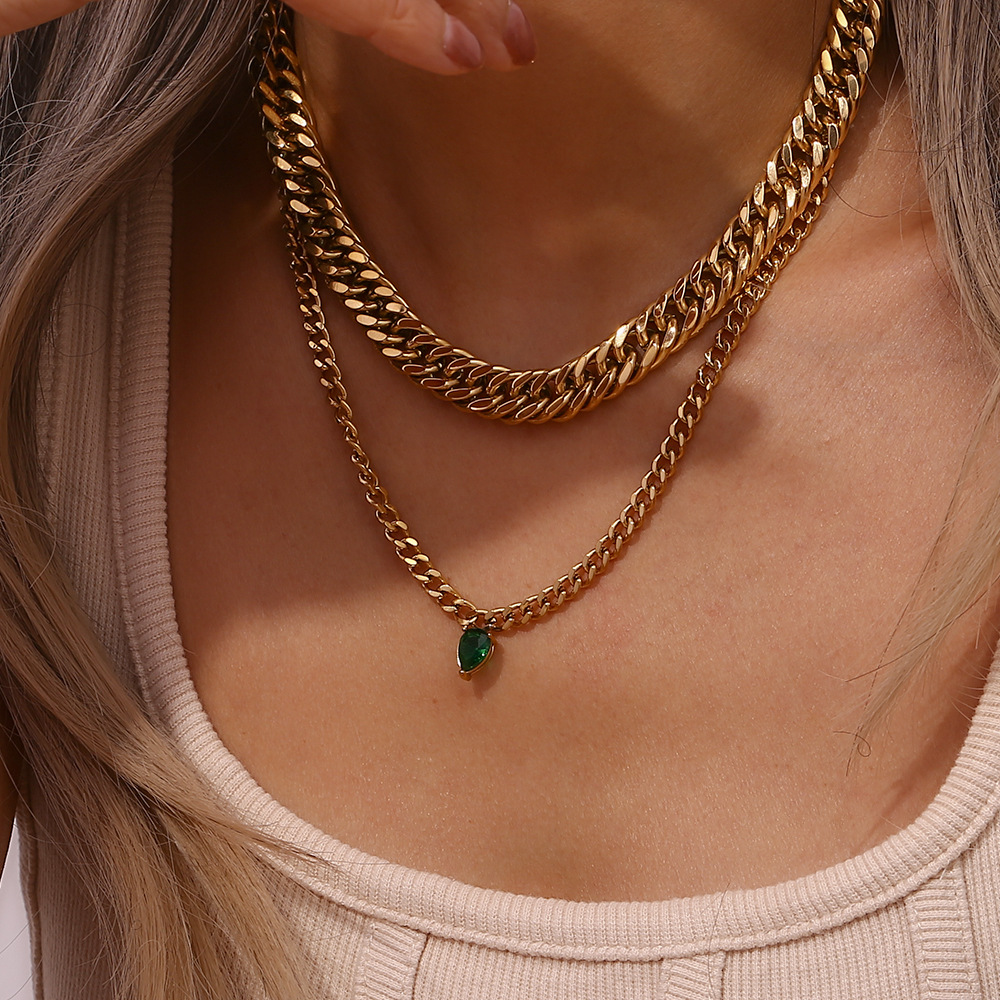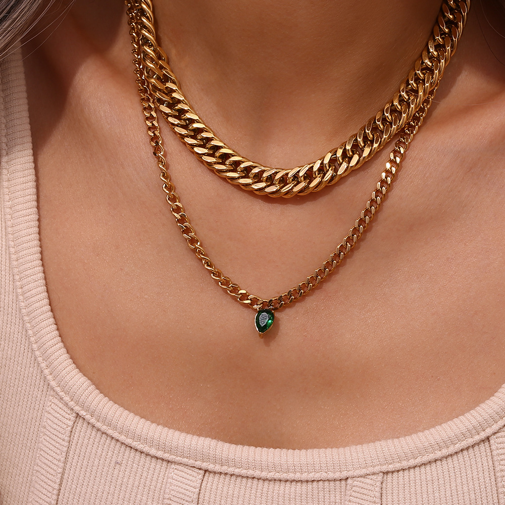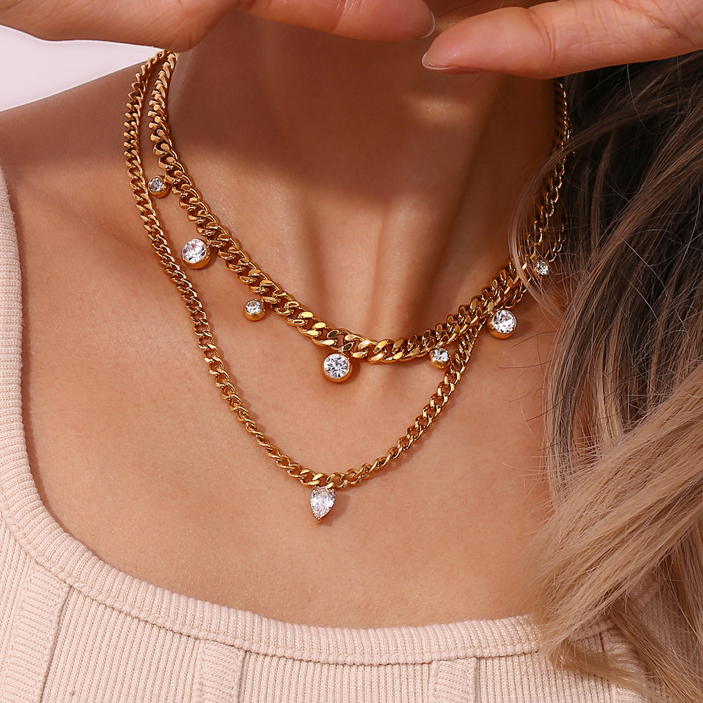 Hot selling clavicle chain accessories stainless steel Cuban chain zircon pendant necklace for women