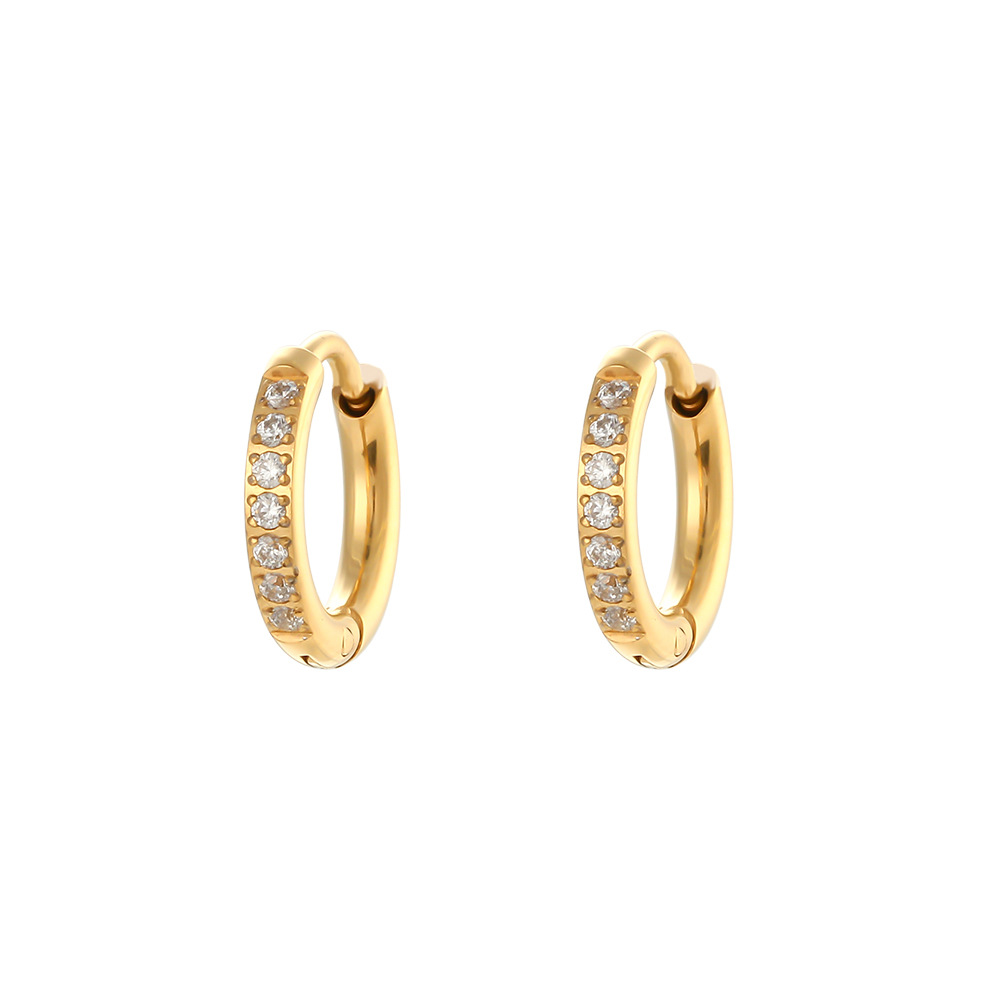 LICA JEWELRY European and American accessories stainless steel earrings female wholesale niche light luxury design rounded edge zircon ear buckle ear ring,CZ earring