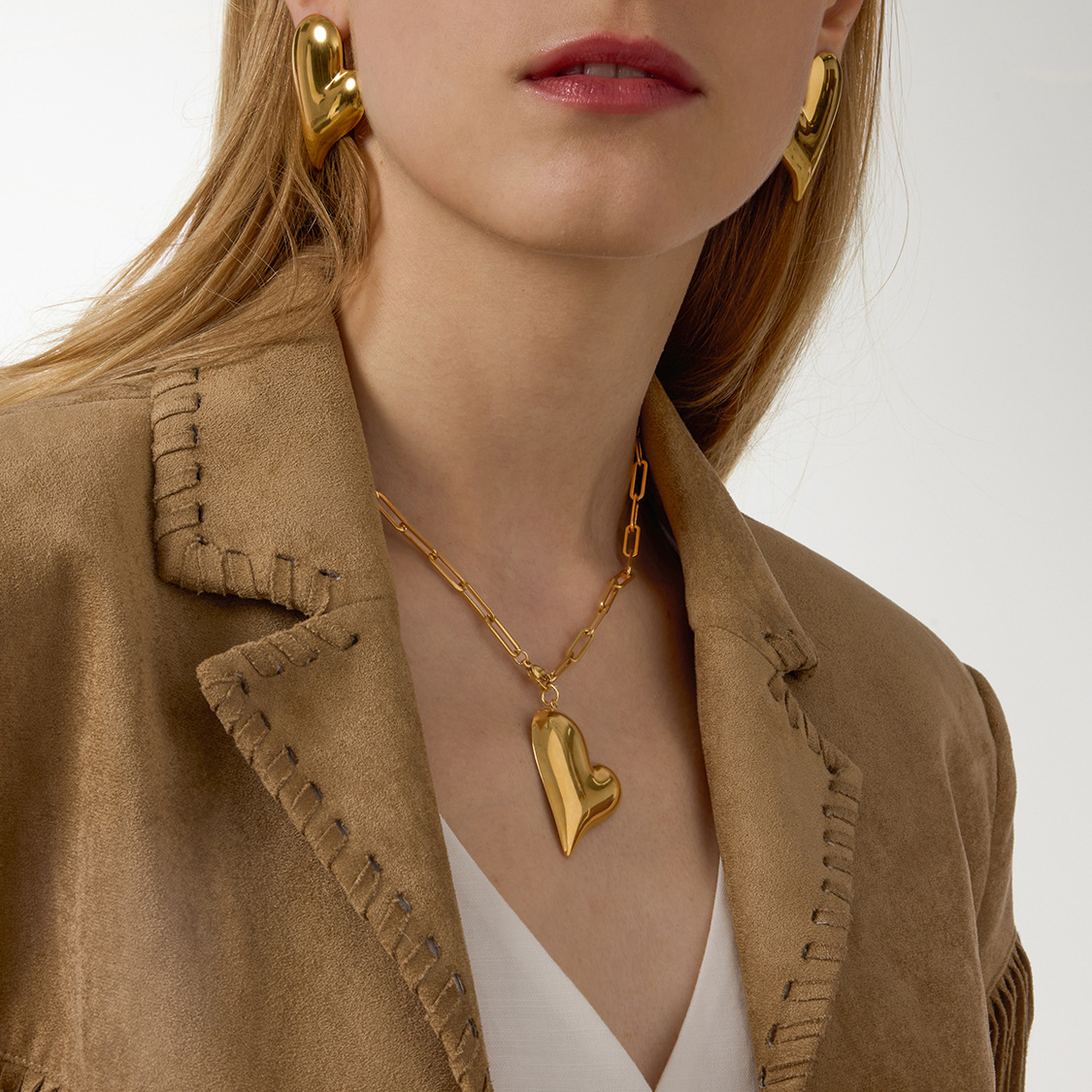 Stainless steel heart-shaped stud earrings, unique and high-end feeling, stainless steel jewelry, no color fading, ear accessories.
