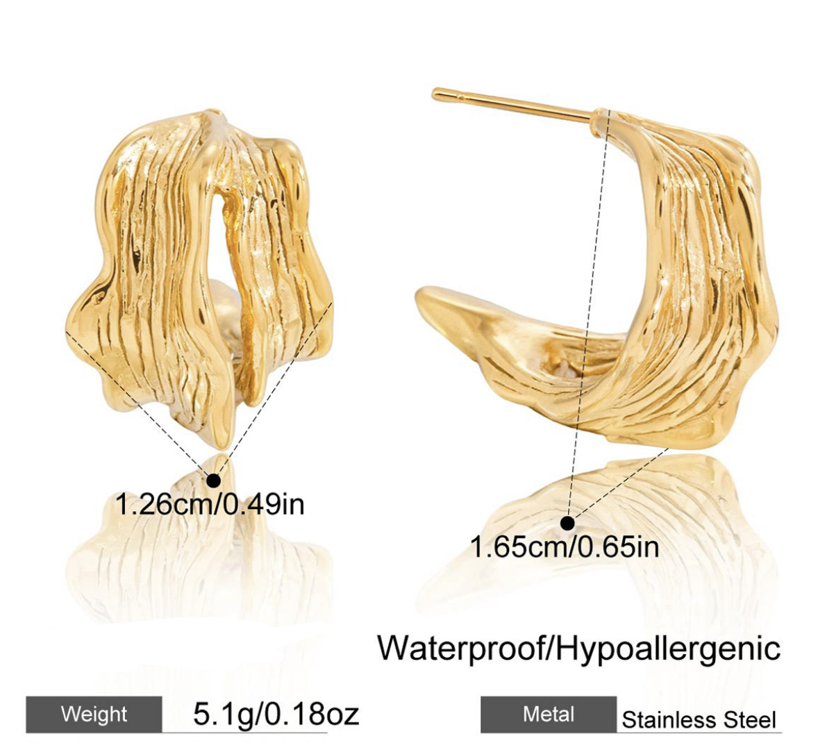 Profile:Wave-shaped hollow C-shaped earrings, stainless steel ear studs, luxurious and high-end ear accessories, cross-border titanium and steel jewelry.