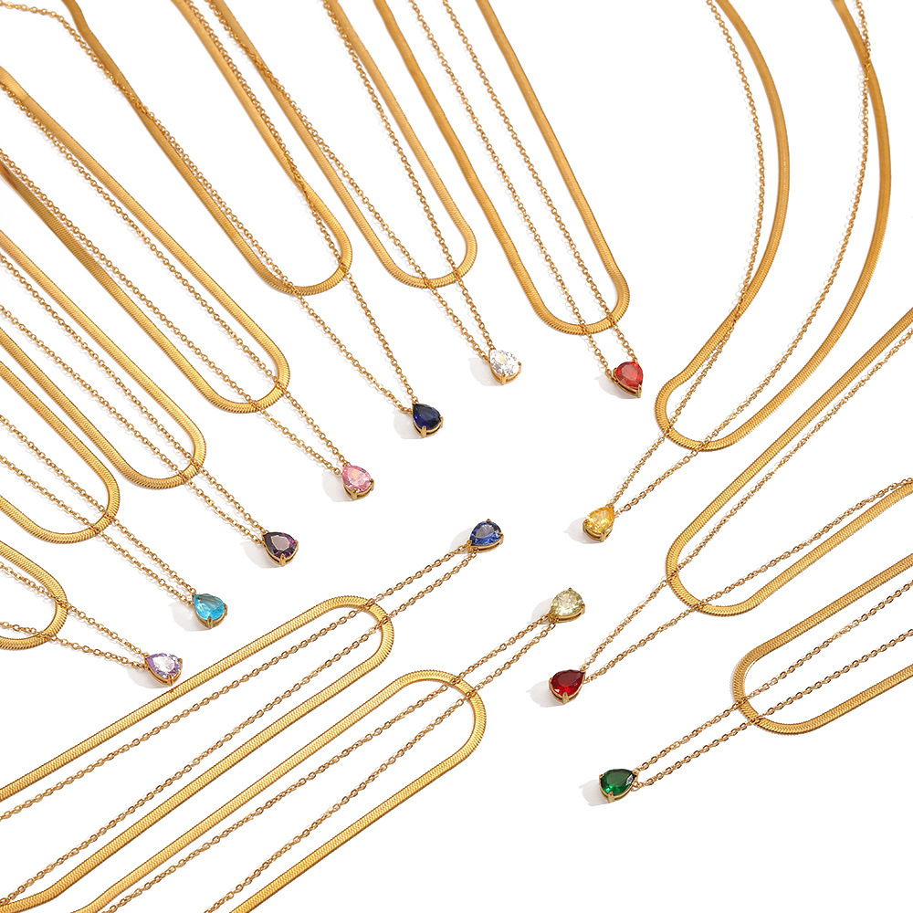 Profile:12 birthstone necklace - stylish and elegant zircon pendant - stainless steel necklace - collar chain