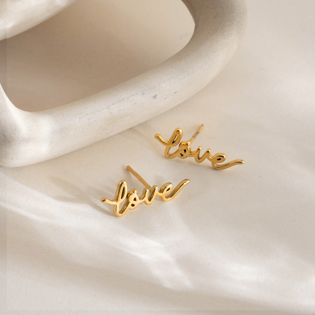 Stainless steel 18K gold-plated minimalist and fashionable stud earrings with the word "LOVE" - a cross-border bestseller letter earring,words earring.