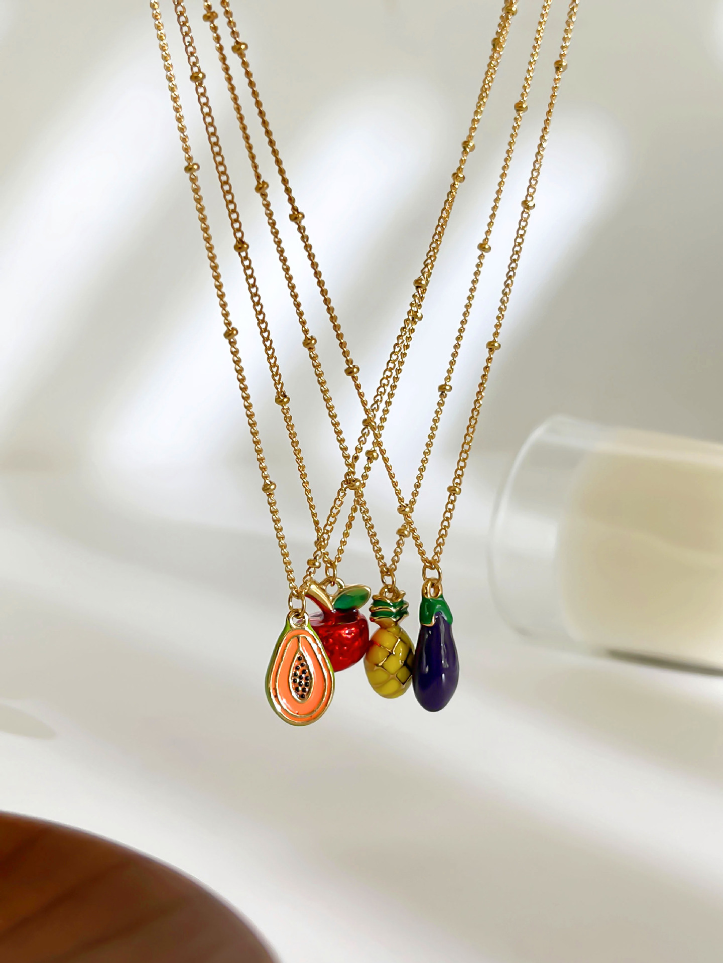 Fashion country-style stainless steel drip oil fruit and vegetable pendant for ladies' necklaces, suitable for daily wear and versatile for all occasions.