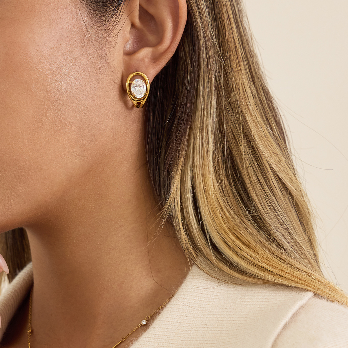 Profile:Stainless steel zirconia earrings - luxurious and high-end ear accessories for autumn and winter, stainless steel jewelry for women
