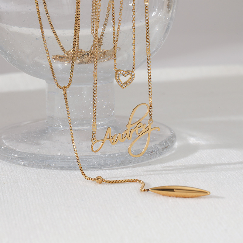 Profile:Stainless steel cross-border versatile new simple letter heart pendant necklace for women. Export style European/American style layered necklace.
