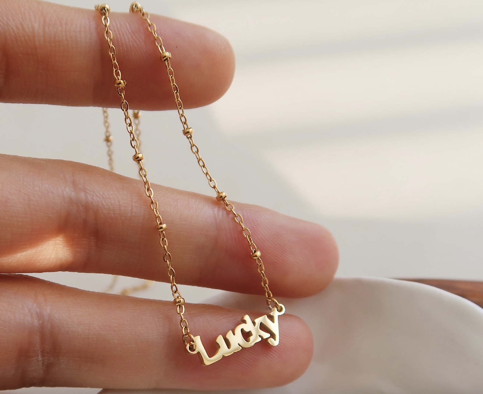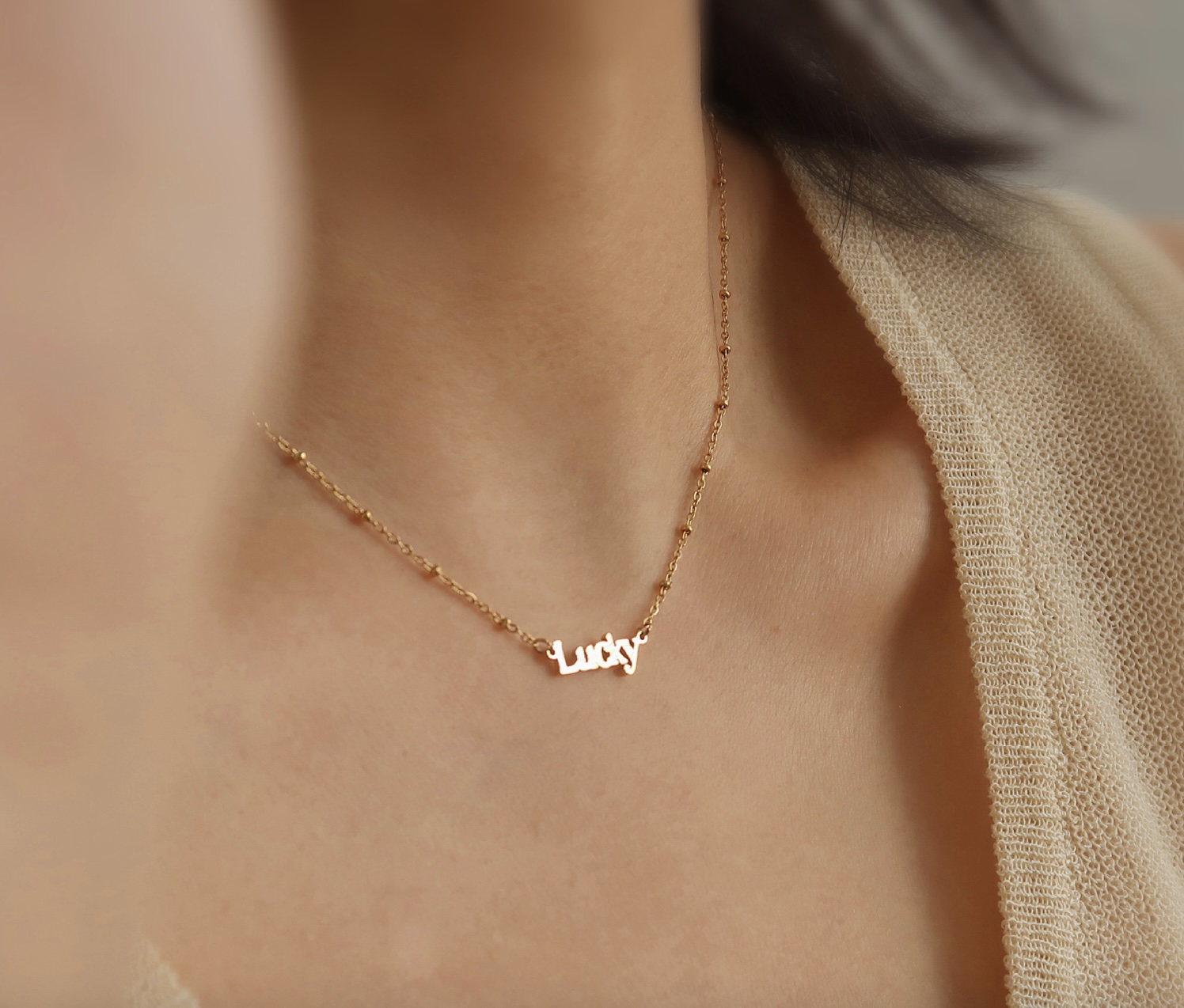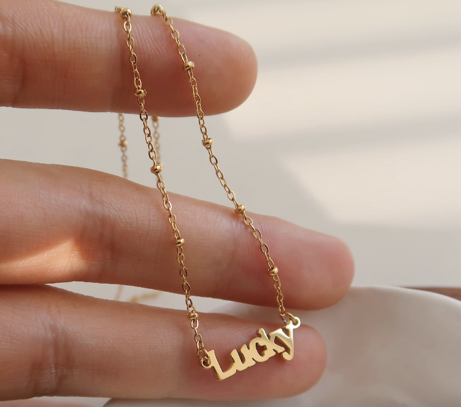 Mother's Day gift - Lucky Necklace - Letter Titanium Steel Stainless Steel Collar Chain - Mini necklace