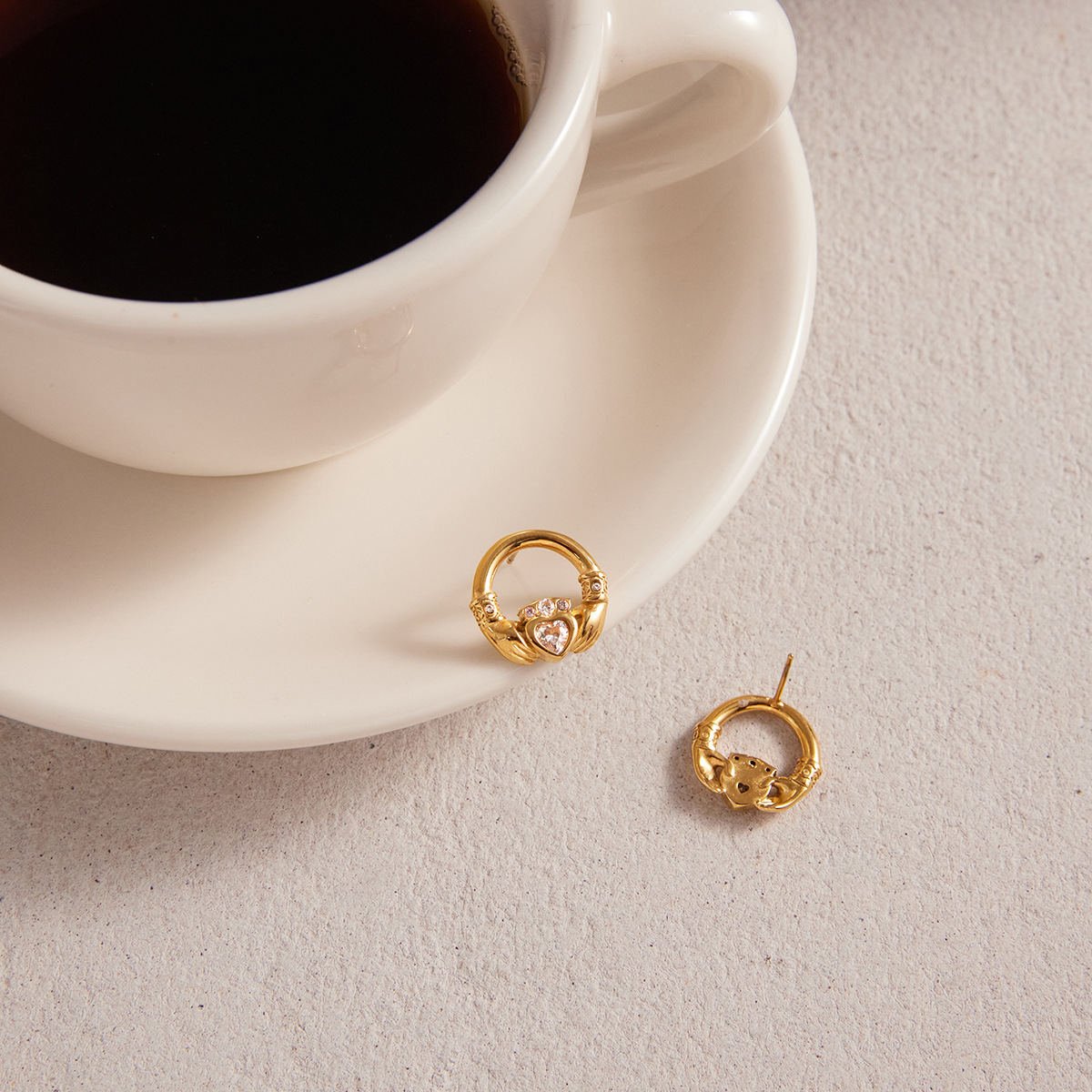 Profile:Original Friendship Hand Stainless Steel Zirconia Earrings - Fall/Winter High-End Ear Jewelry