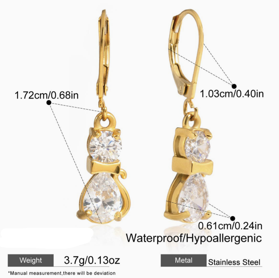 Profile:Stainless steel cat zirconia earrings - luxurious and high-end ear jewelry, small and exclusive titanium steel cross-border accessories.