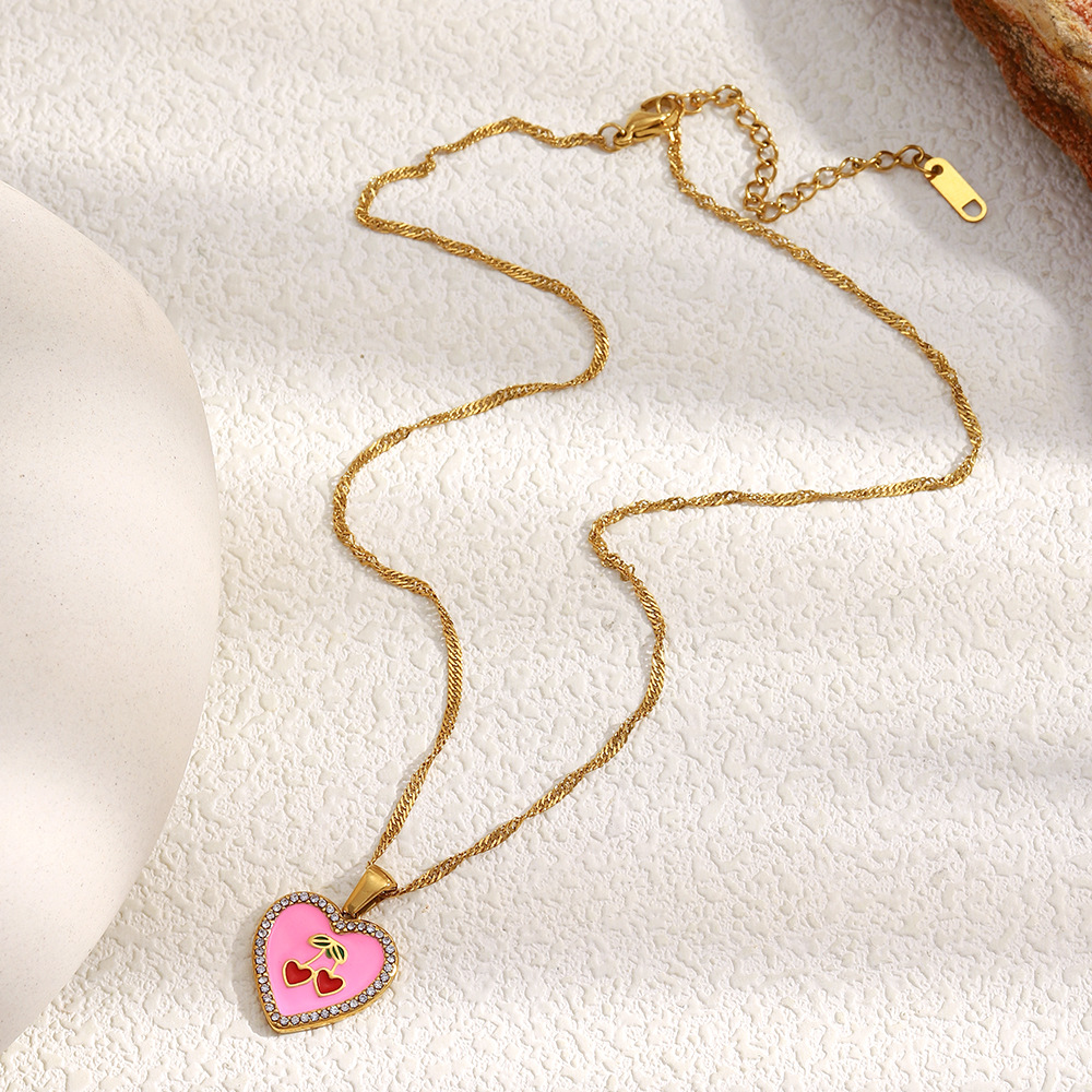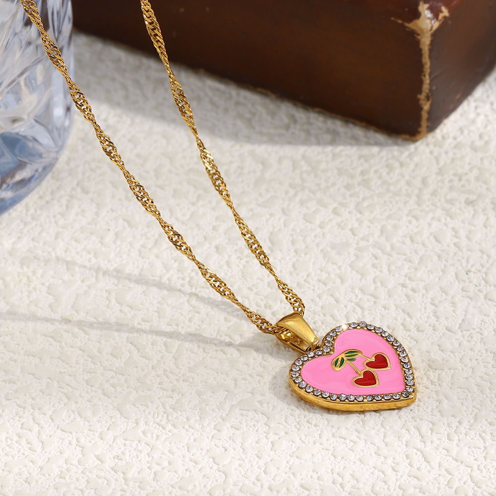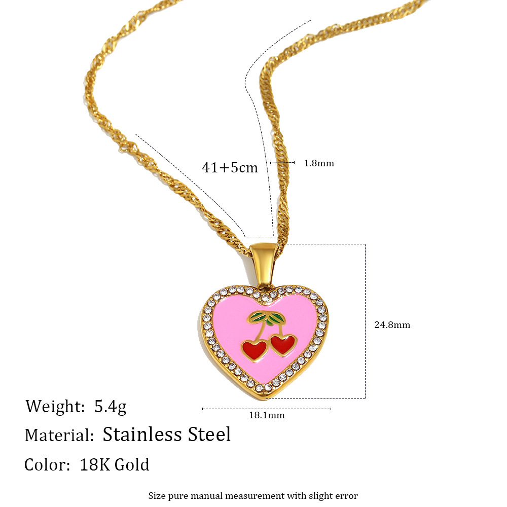 Profile:Fashionable and elegant French-style high-end pendant necklace made of stainless steel plated with 18K gold, featuring a drooping cherry-shaped heart pendant.Love necklace,mother's day gift