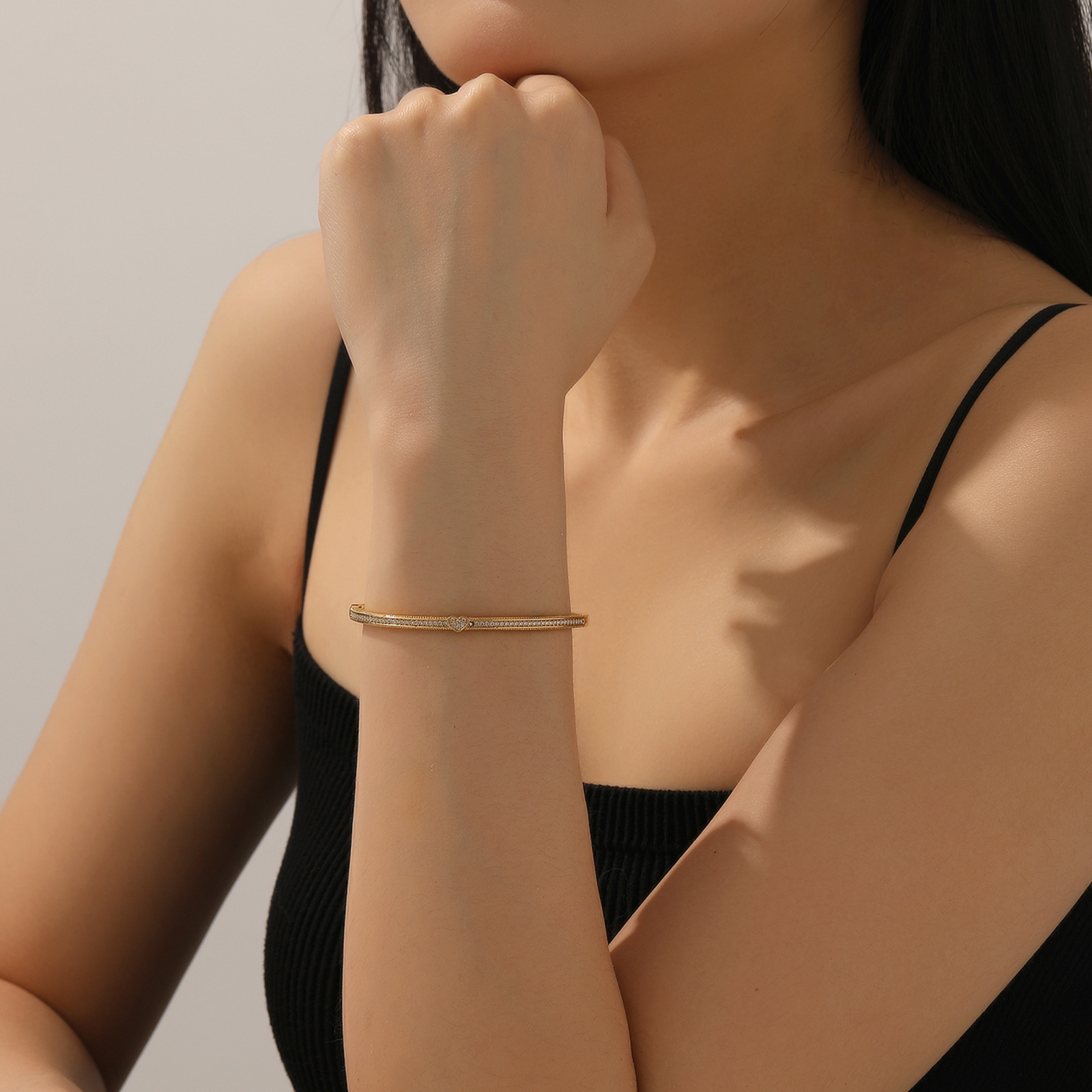 Profile:Love-filled row of zircon stainless steel 18K gold non-fading high-end unique small-sized versatile couple star-shaped bracelet
