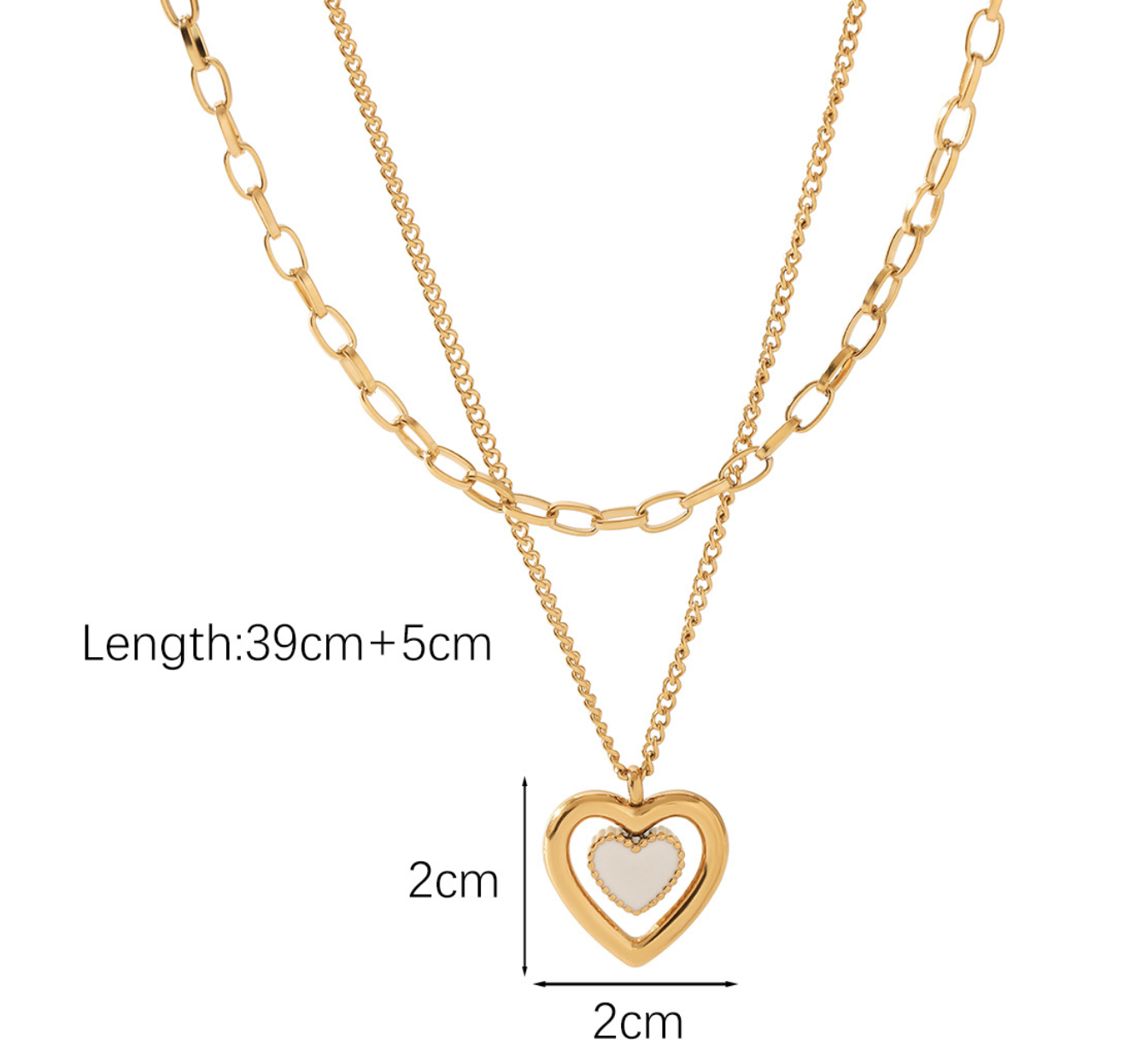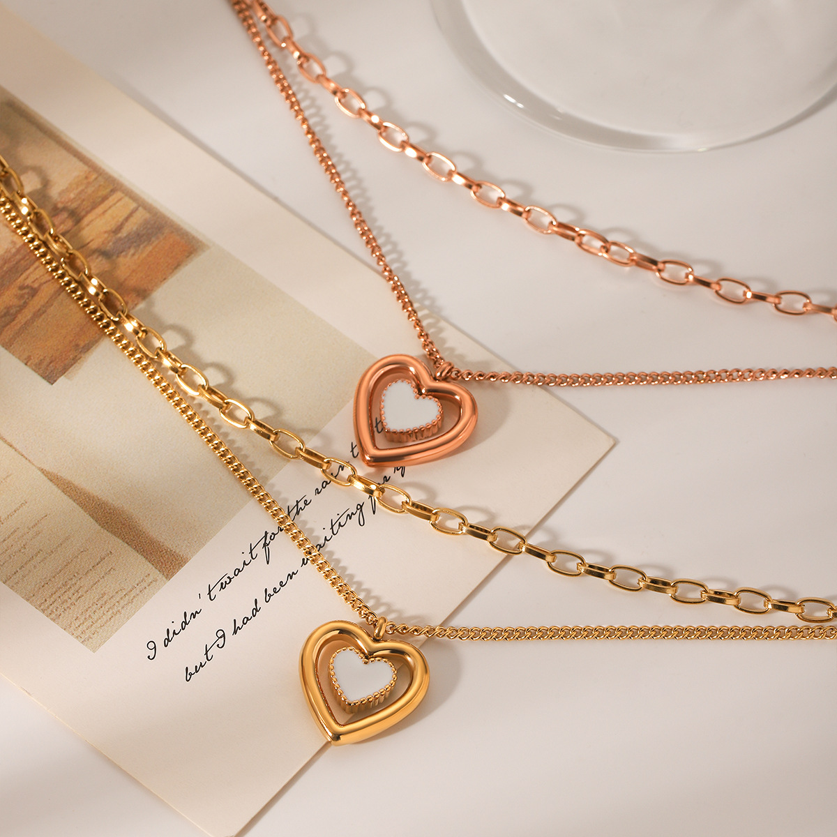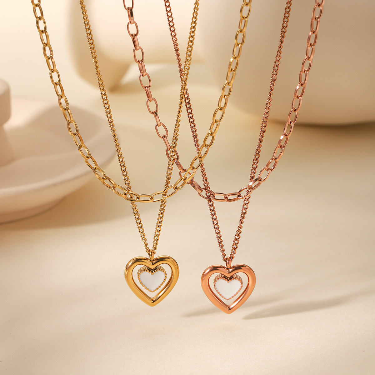 Profile:18k gold stainless steel heart pendant necklace for women, rose gold titanium steel choker, double-layer neck chain