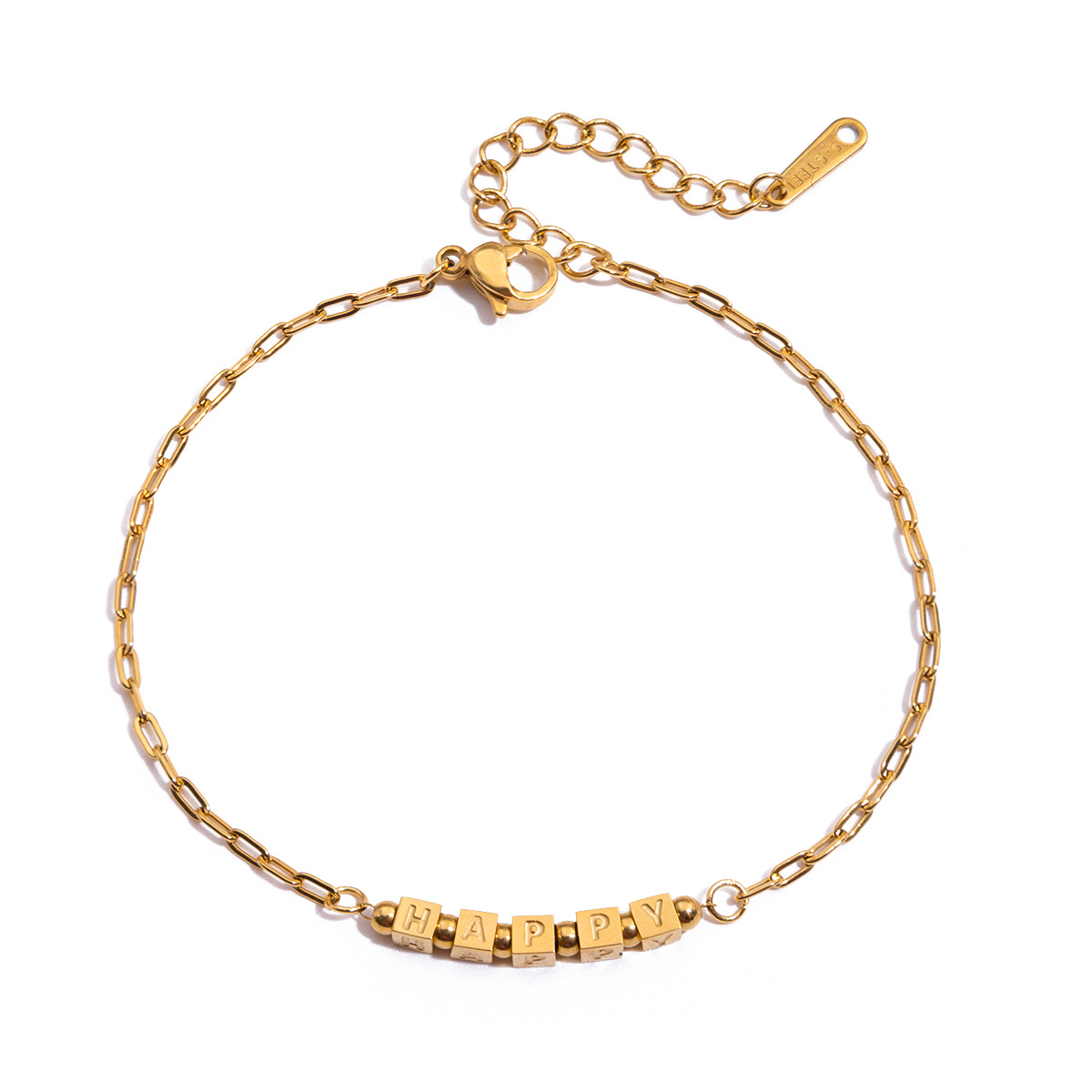 18K gold stainless steel HAPPY letter friendship bracelet, cross-border best-selling, does not fade, highly versatile bracelet