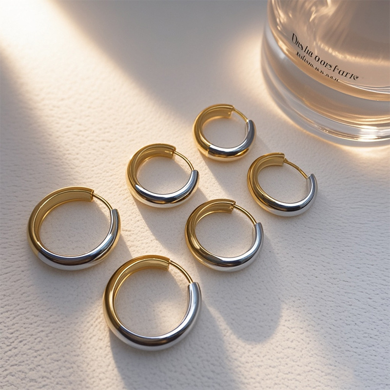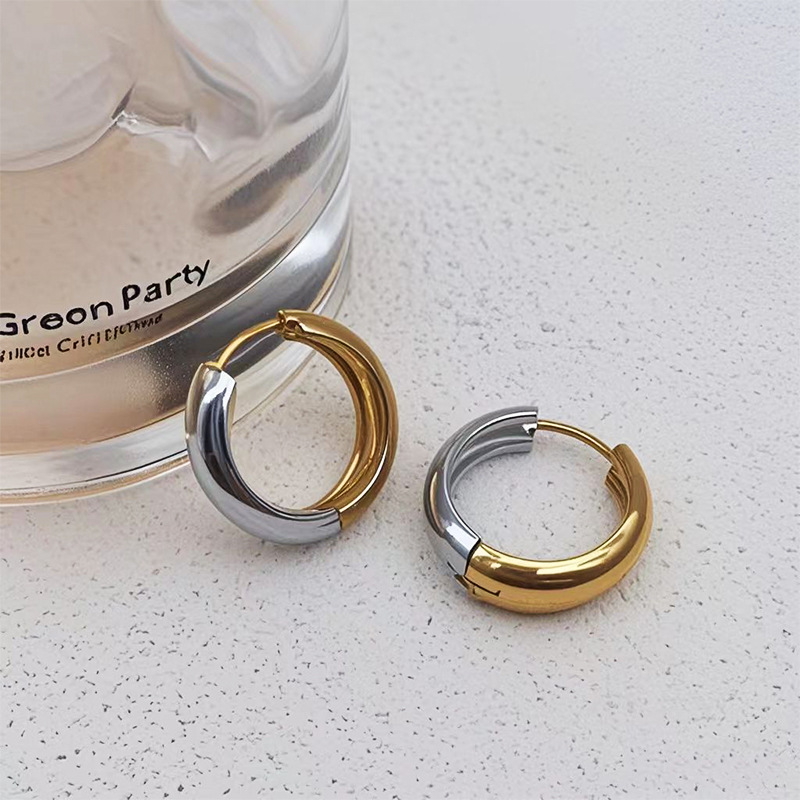Stainless steel earrings featuring geometric design, highly versatile and luxurious Korean style minimalist trend, with round double-color ear clasps.