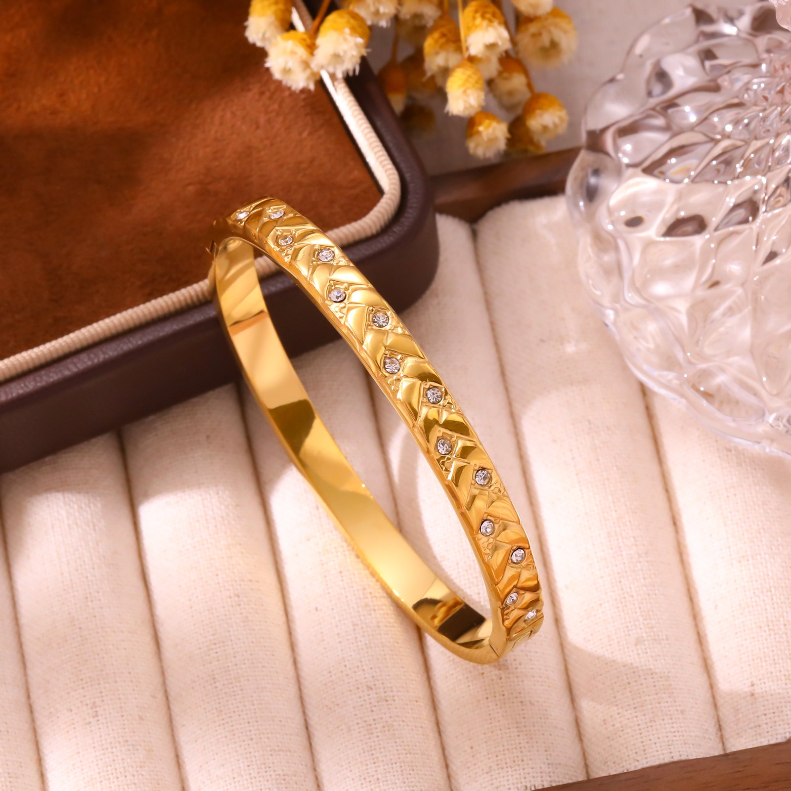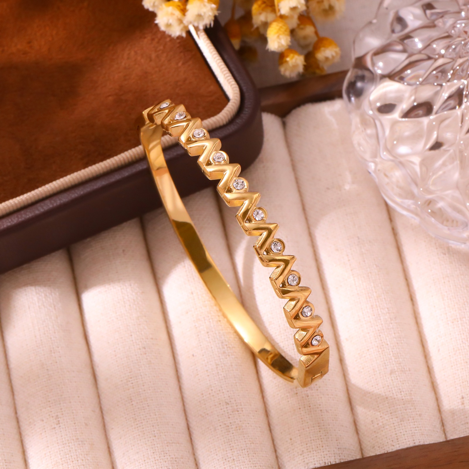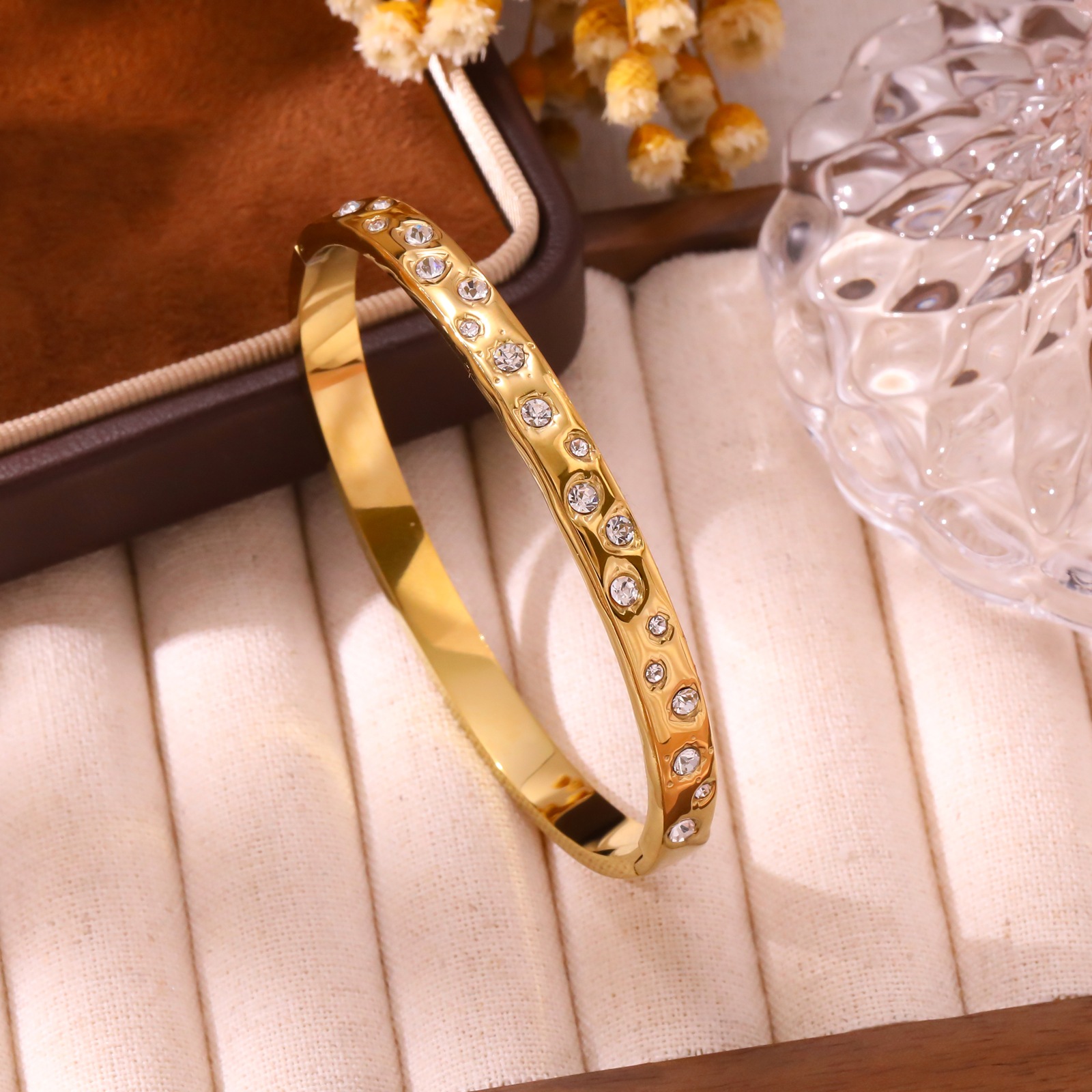 Luxury-lite zirconia-studded bracelet, selling well among the niche market, featuring simple yet sophisticated design with non-fading stainless steel wristband accessory.