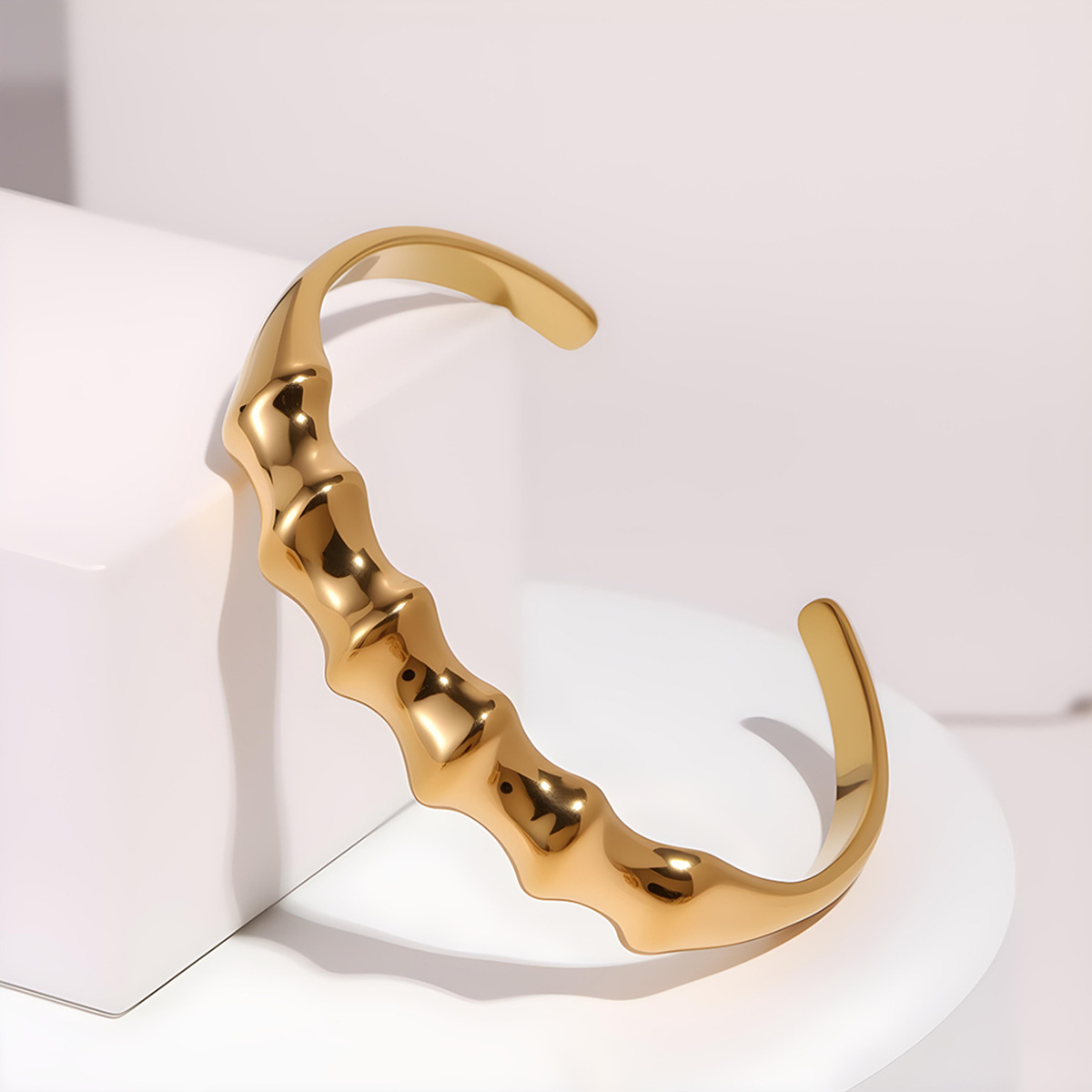 Profile:Retro spiral design stainless steel bracelet that doesn't fade, 18K gold plated, elegant high-end wristband