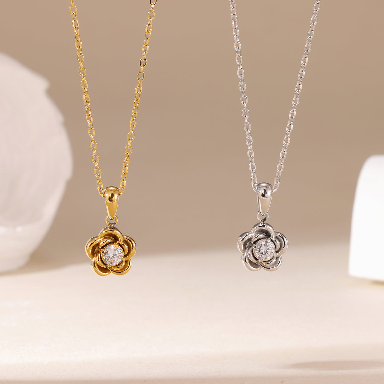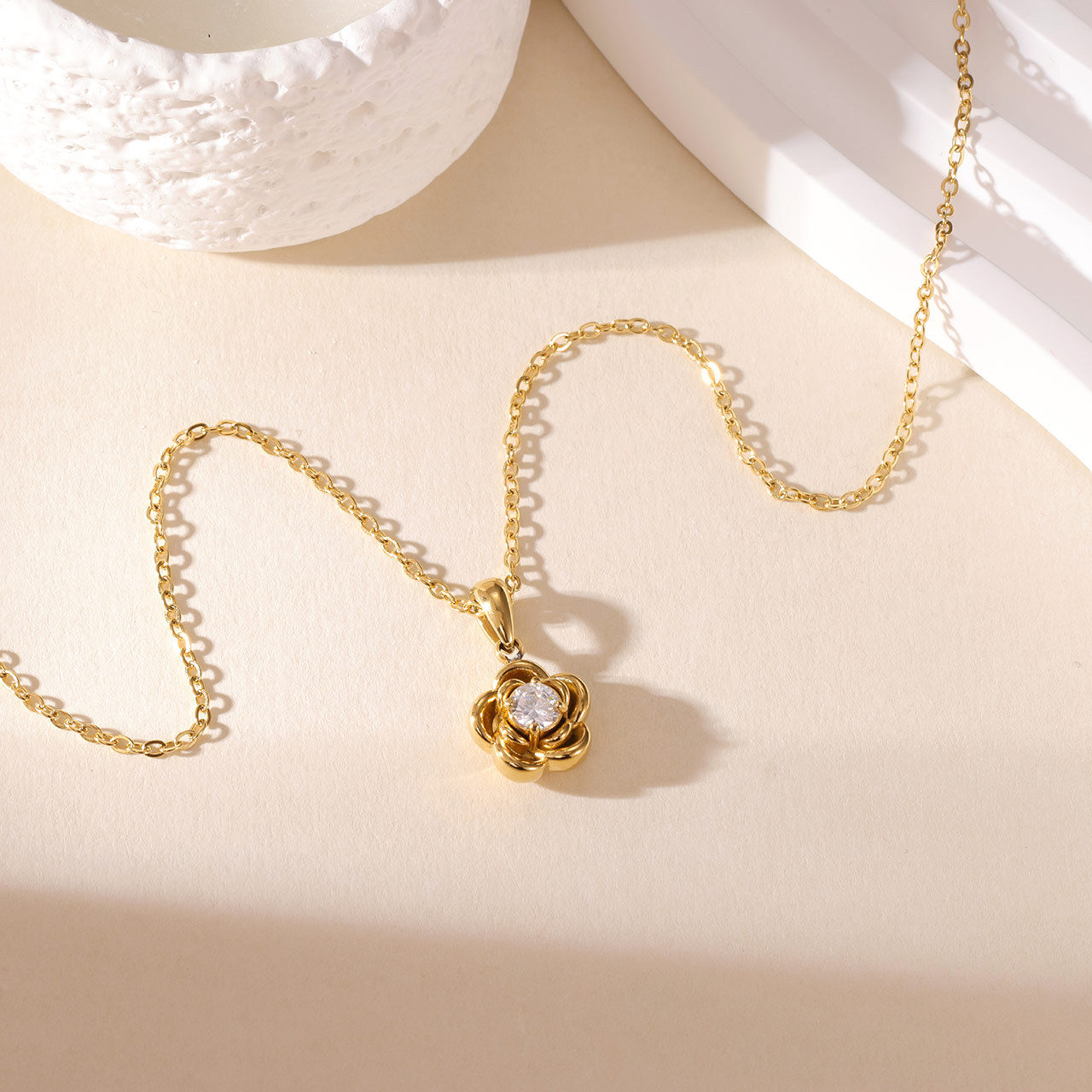 Profile:Floral pendant stainless steel necklace - simple, versatile, small and exquisite, collar chain, suitable for daily wear, light and fresh neck chain, sweater chain