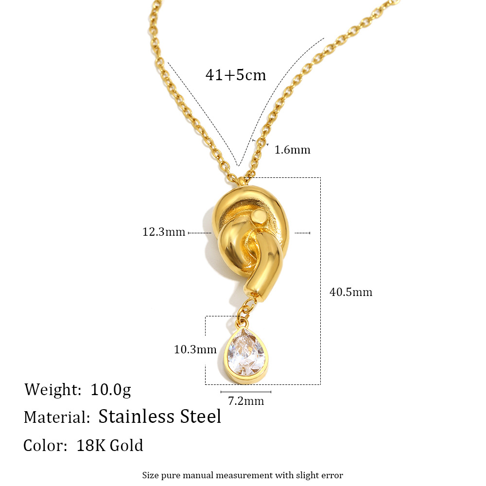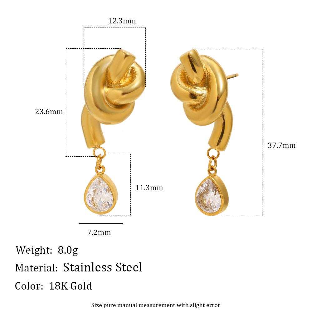 Profile:Retro luxury ear jewelry - stainless steel plated with 18K gold, knotted drop-shaped zirconia necklace accessory