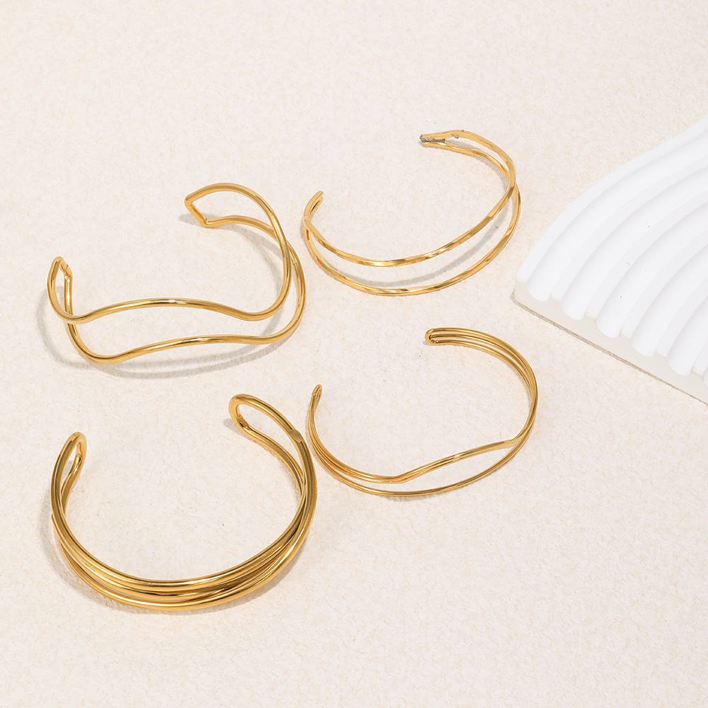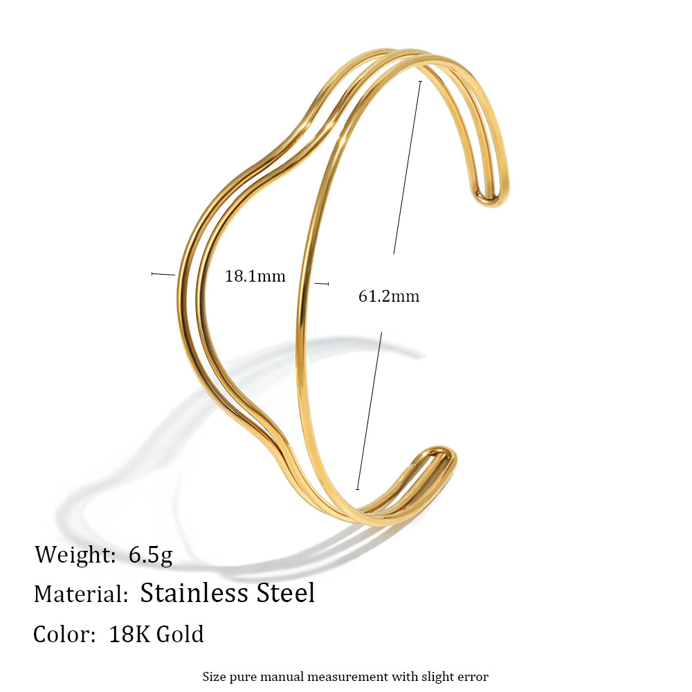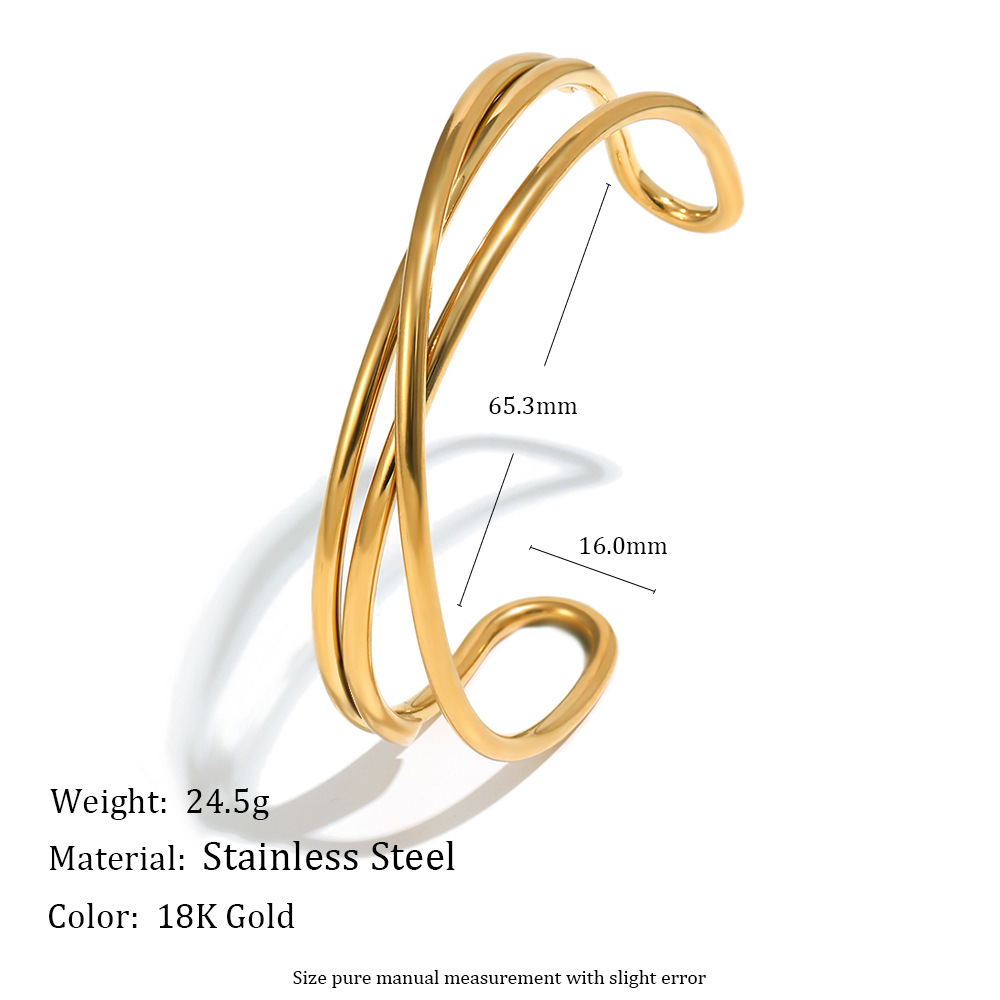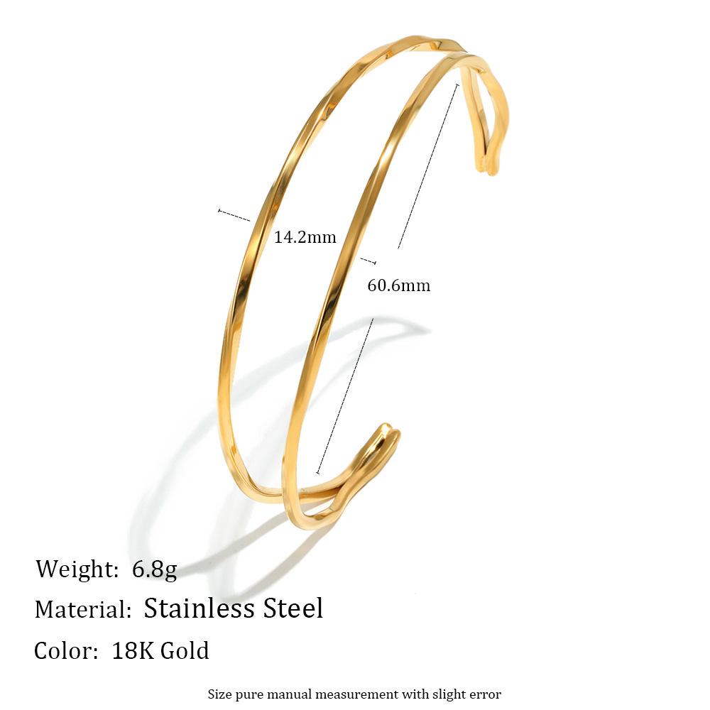 Profile:Handcrafted stainless steel bracelet with 18K gold plating and twisted lines design