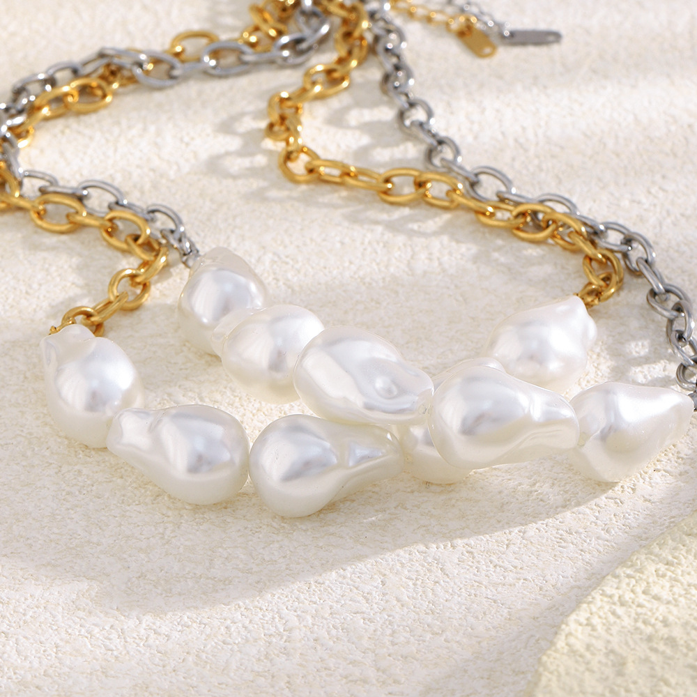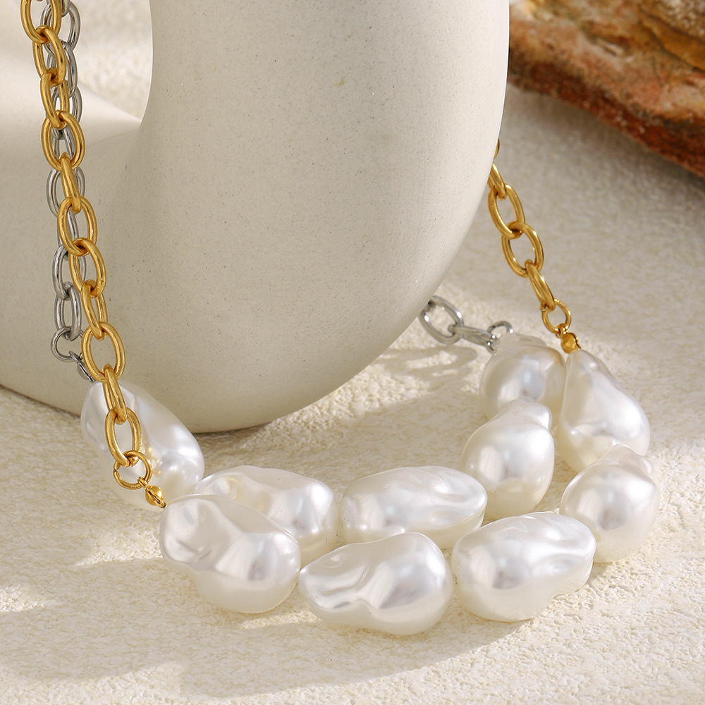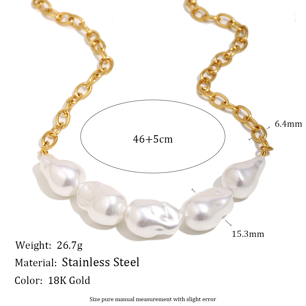 Profile:Stainless steel plated with 18K artificial Baroque pearl O-shaped chain necklace for women