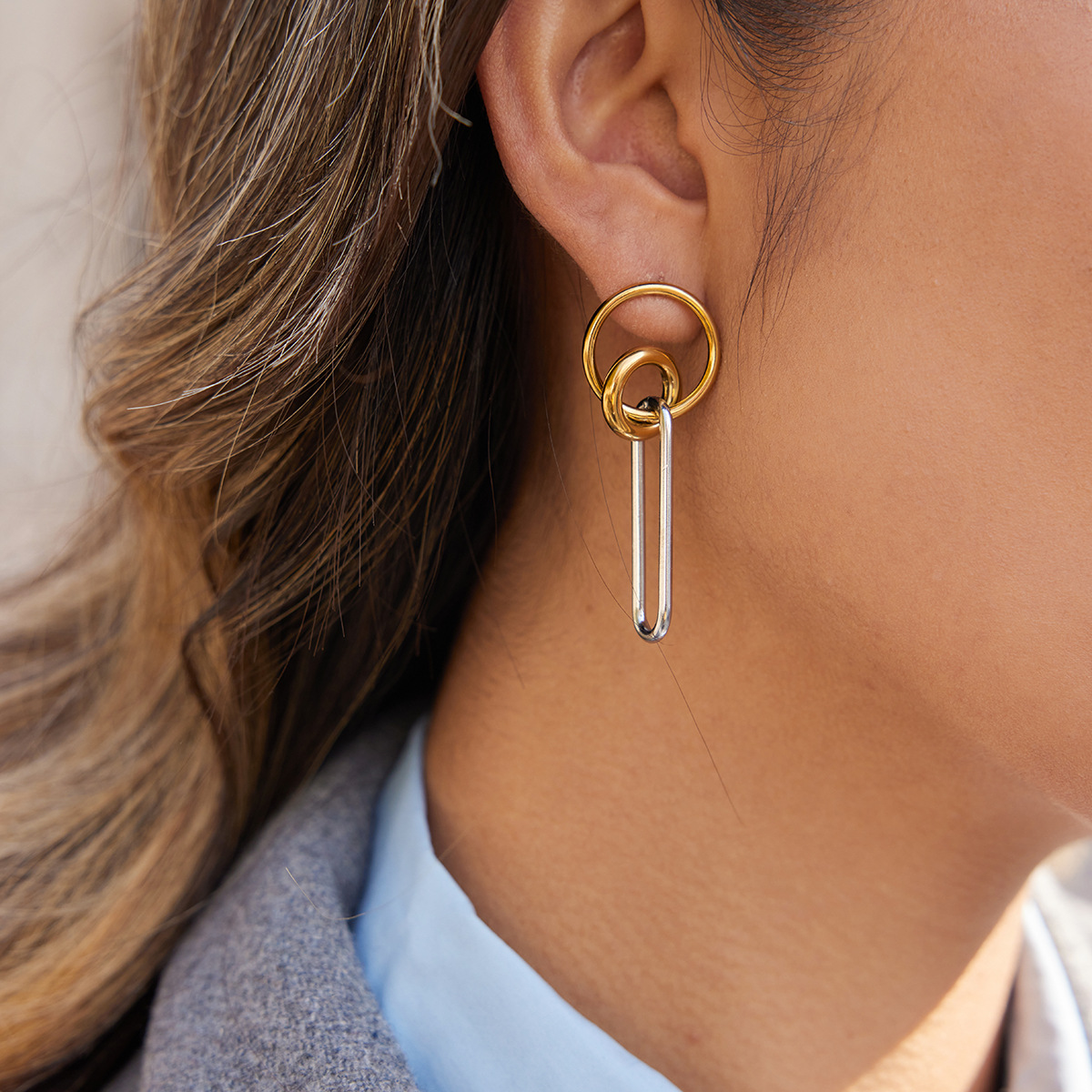 Profile:Minimalist style 18K stainless steel multi-color linear geometric fringed earrings for women