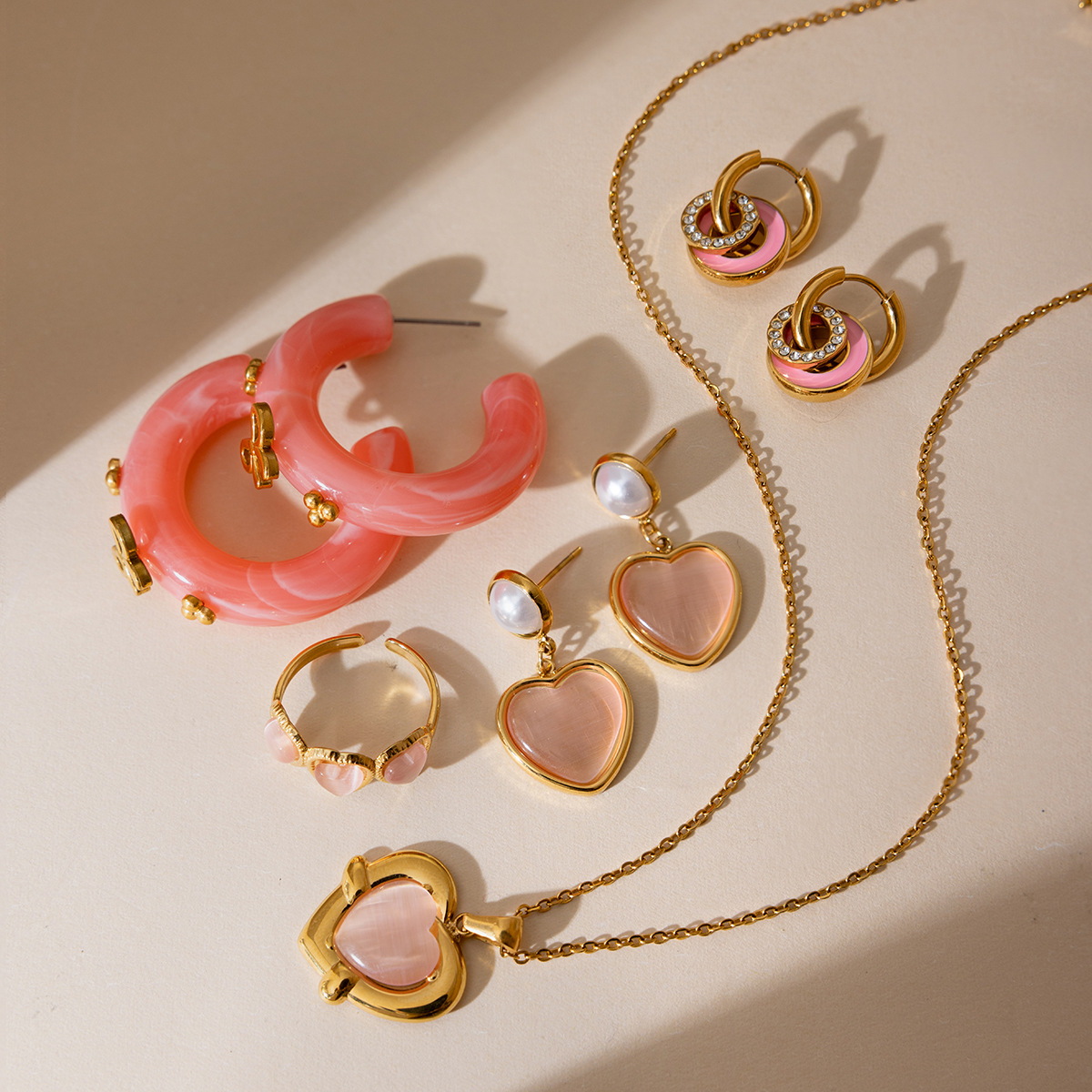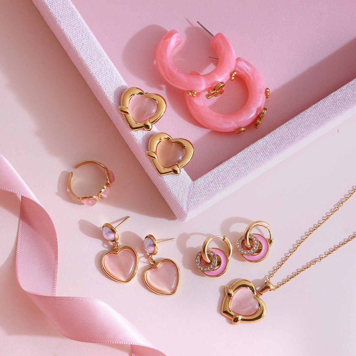 Profile:Stainless steel 18K pink sweet drop earrings - a small, fresh and sophisticated cross-border accessory set for women.
