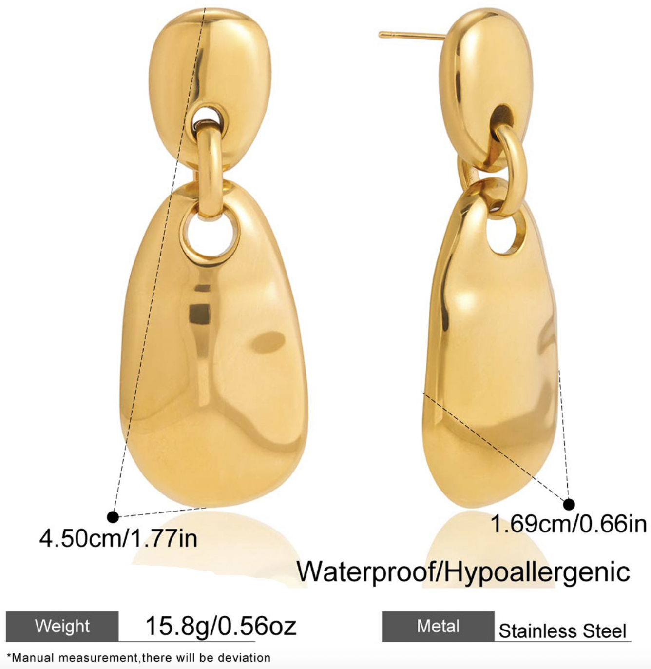 Profile:Minimalist style 18K gold and stainless steel polished pendant earrings for winter, high-end and retro style earrings, cross-border accessories