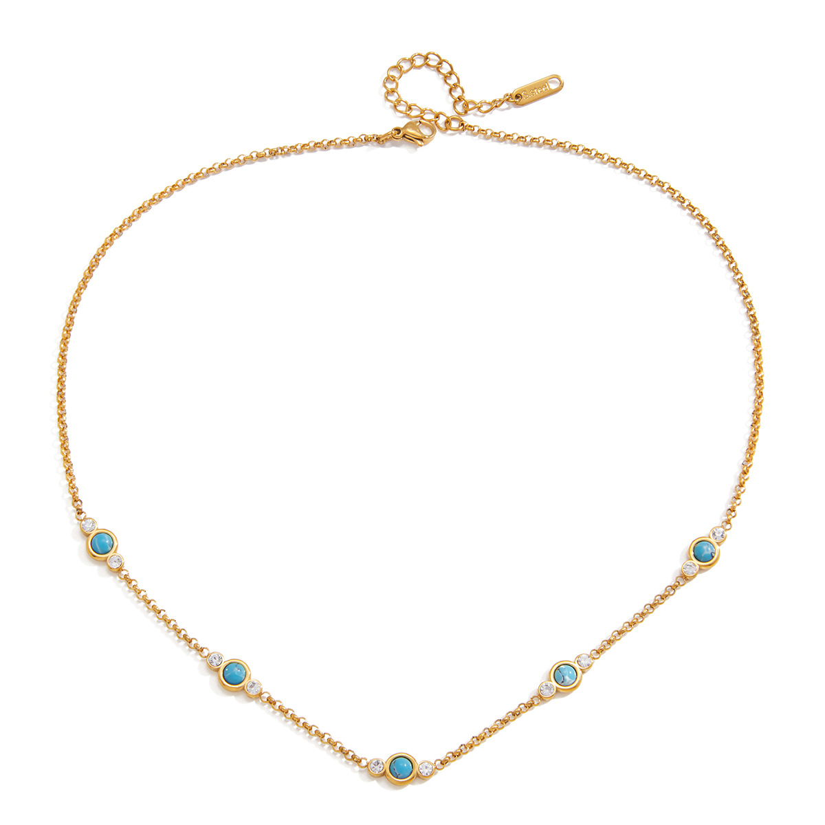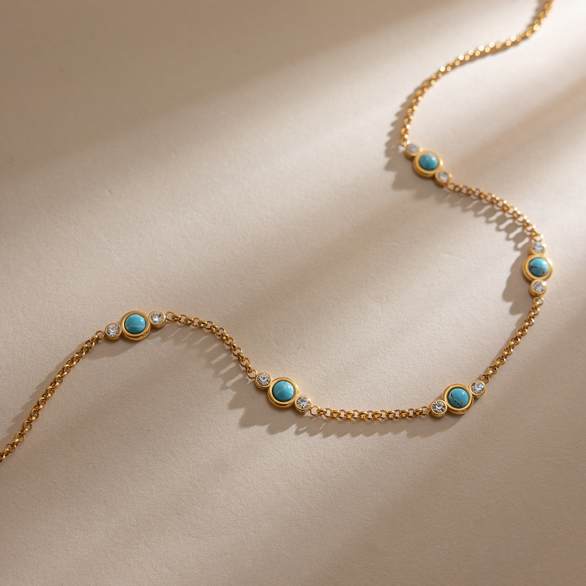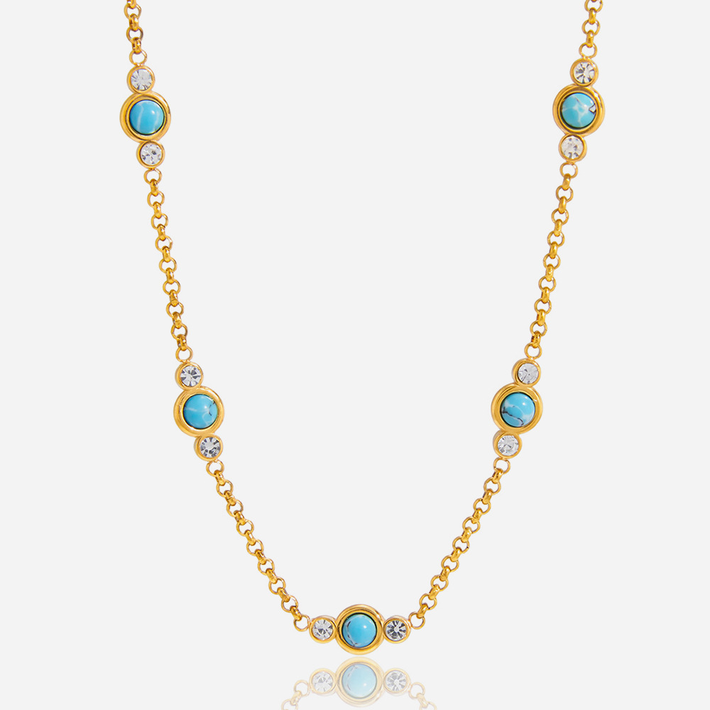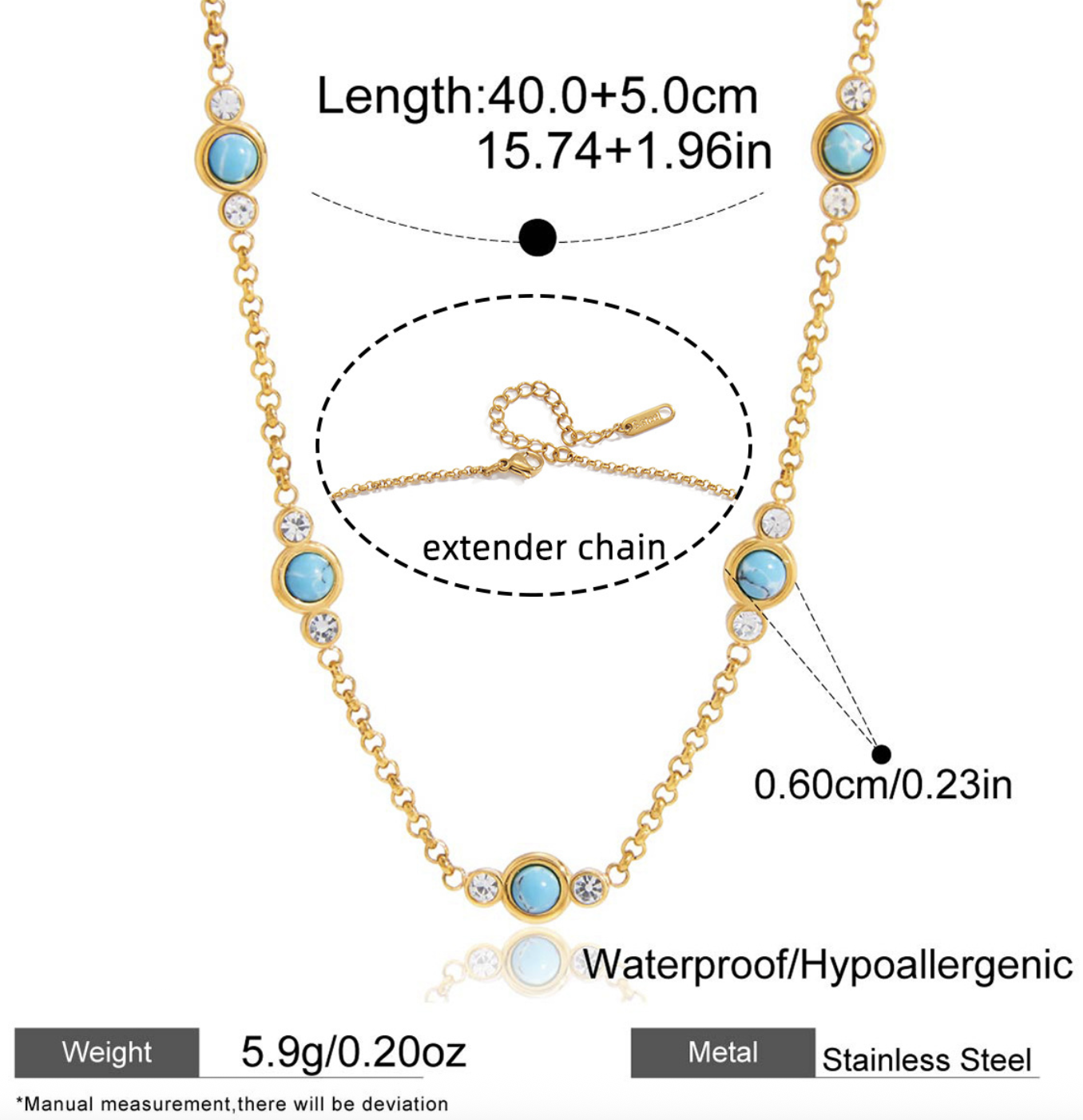 Profile:Classic Style 18K Stainless Steel Beaded Blue Turquoise Necklace - Unique Design Cross-border Jewelry for Women