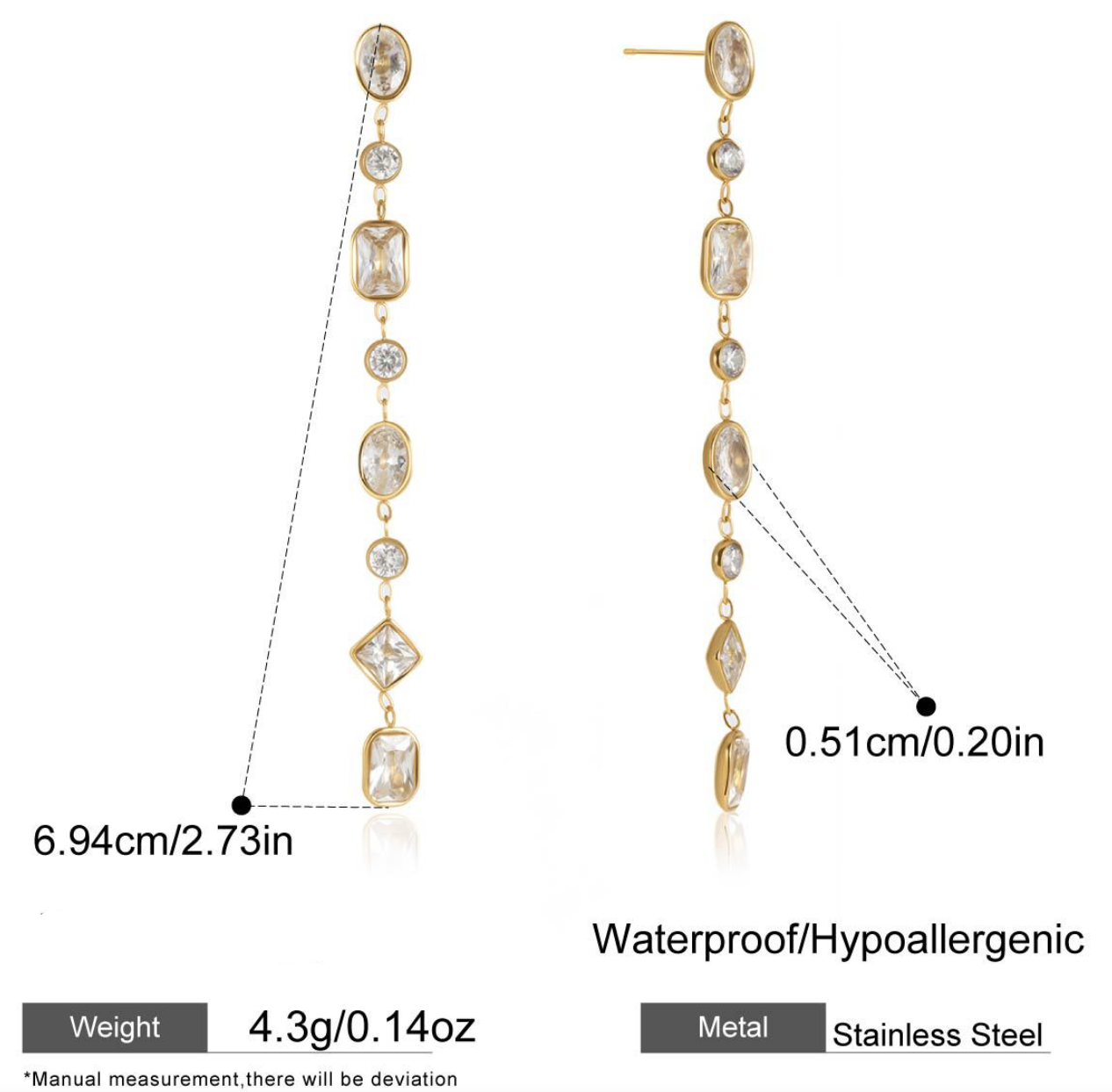 Profile:Zircon stainless steel fringed earrings - exclusive high-end style earrings with a delicate luxury touch. Titanium steel dangle earring for women.