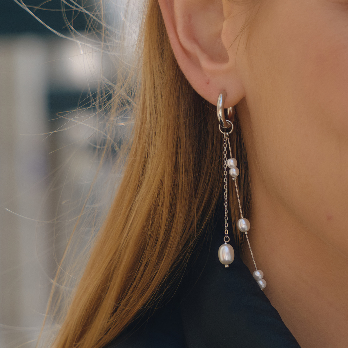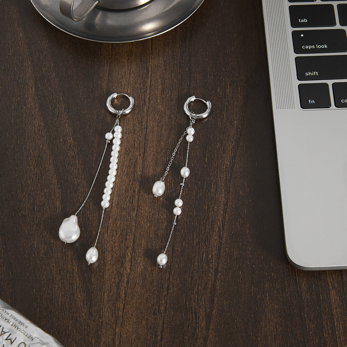 Profile:Stainless steel fringed pearl earrings - luxurious and high-end ear accessories with titanium steel jewelry.