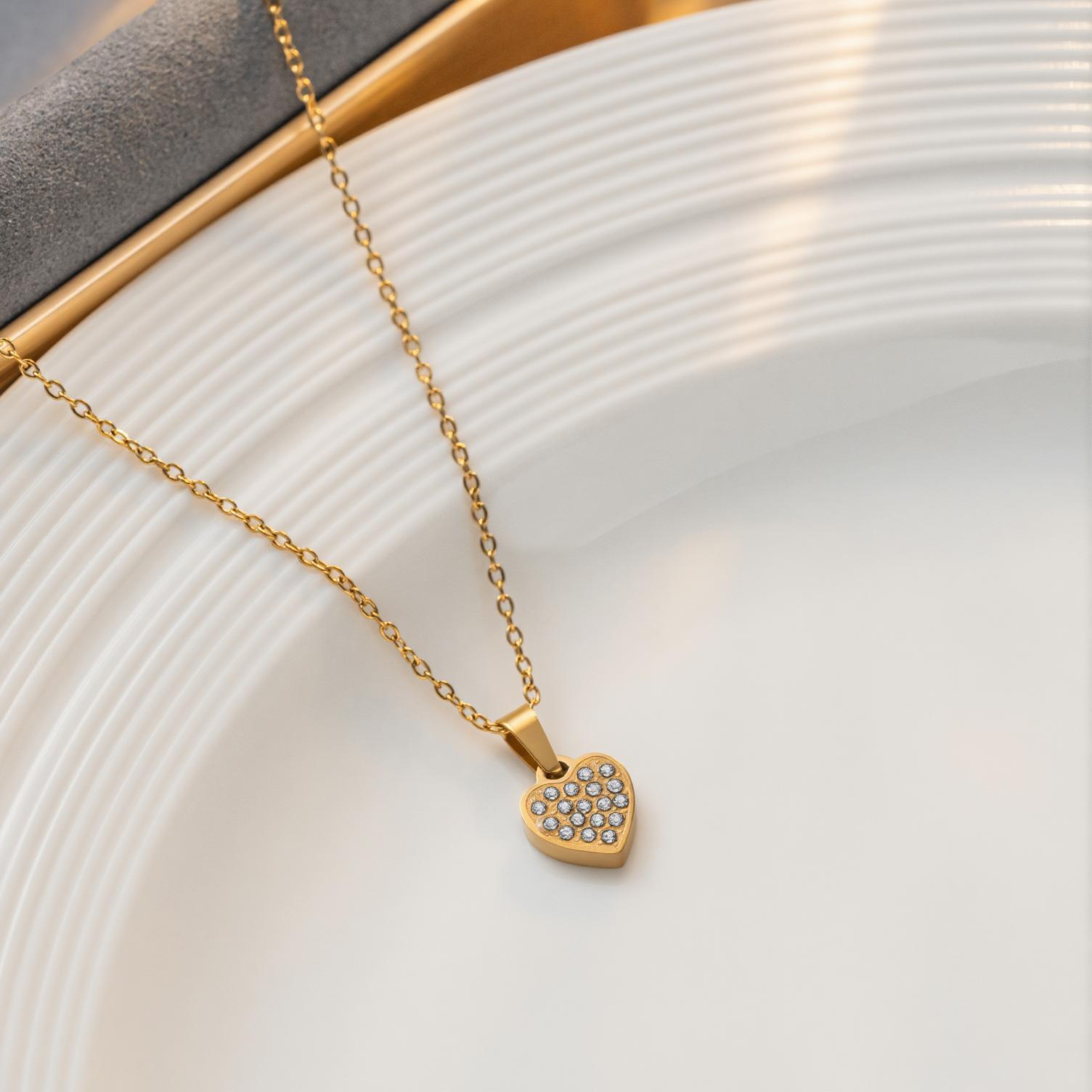New Stainless and steel zircon heart necklace with 18k gold minimalist heart pendant NECKLACE