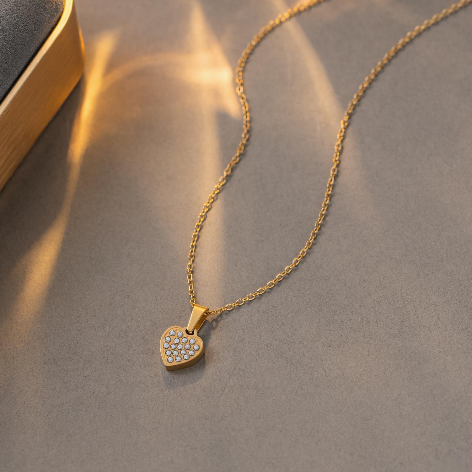 • New Stainless and steel zircon heart necklace with 18k gold minimalist heart pendant NECKLACE